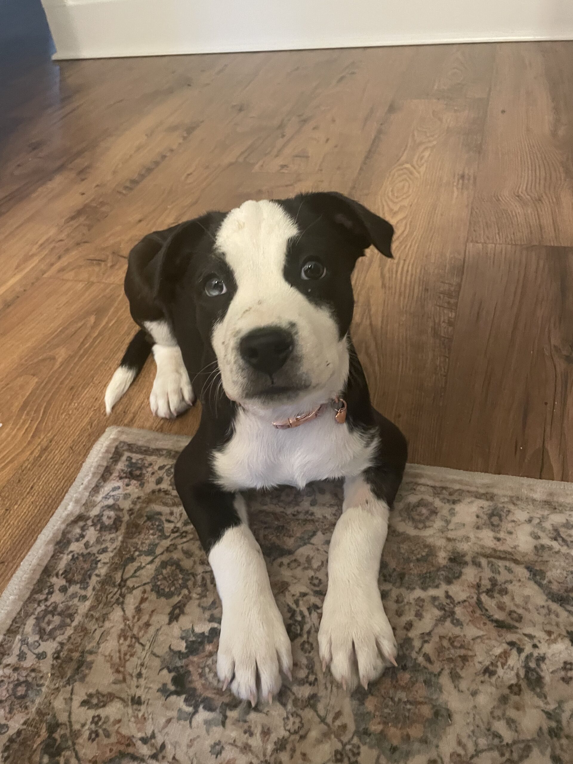 Say hello to Cloud! She has the coolest half blue eye!! She is sweetest girl who's been winning the hearts of everyone she meets and learning how beautiful life can be. Cloud has come a long ways. She came in to rescue with a prolapse and had to have surgery at just eight weeks old. She's made a full recovery and has the all clear from the vet to be adopted. She is a snuggly curious and incredibly sweet little girl. She sleeps in her crate from the time the sun goes down to the sun comes up without making a peep and is well on her way to being fully potty trained. She plays great with her foster siblings and would be super happy in a home with another dog. She bonds deeply to people and is a loyal companion. She is blooming into a dog that she's always meant to be. If you or someone you know are looking for your new best friend Cloud is ready for her forever family. Cloud is spayed, current on vaccines, microchipped, and has a clean bill of health from the vet.
