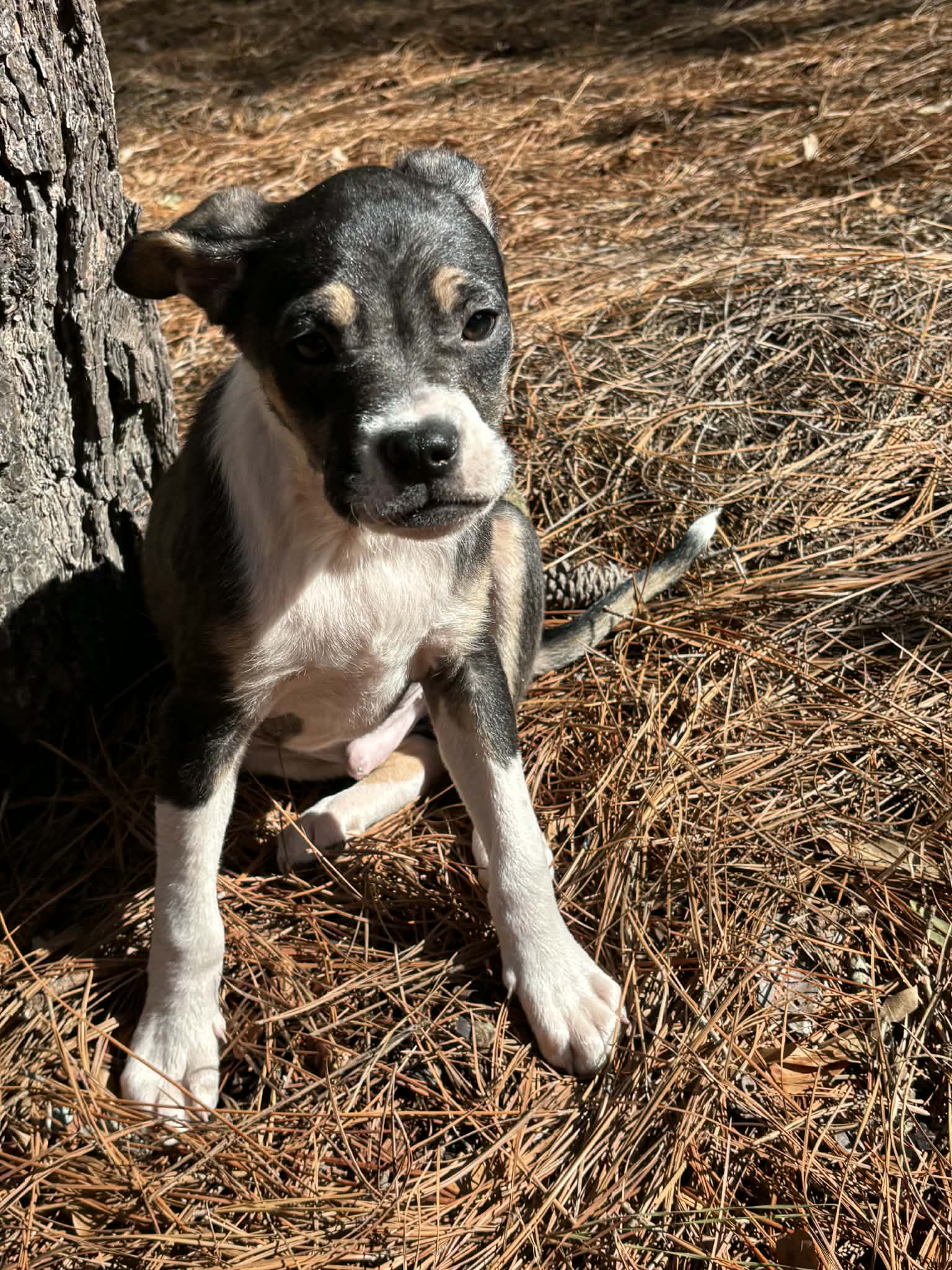 Esther is a little black and white cutie pie. He even has little brown eyebrows. He has the most adorable underbite He can be laid back and quiet but and we'll also turn around and counts and play and romp with his siblings. He's a curious little guy who loves to be snuggled.