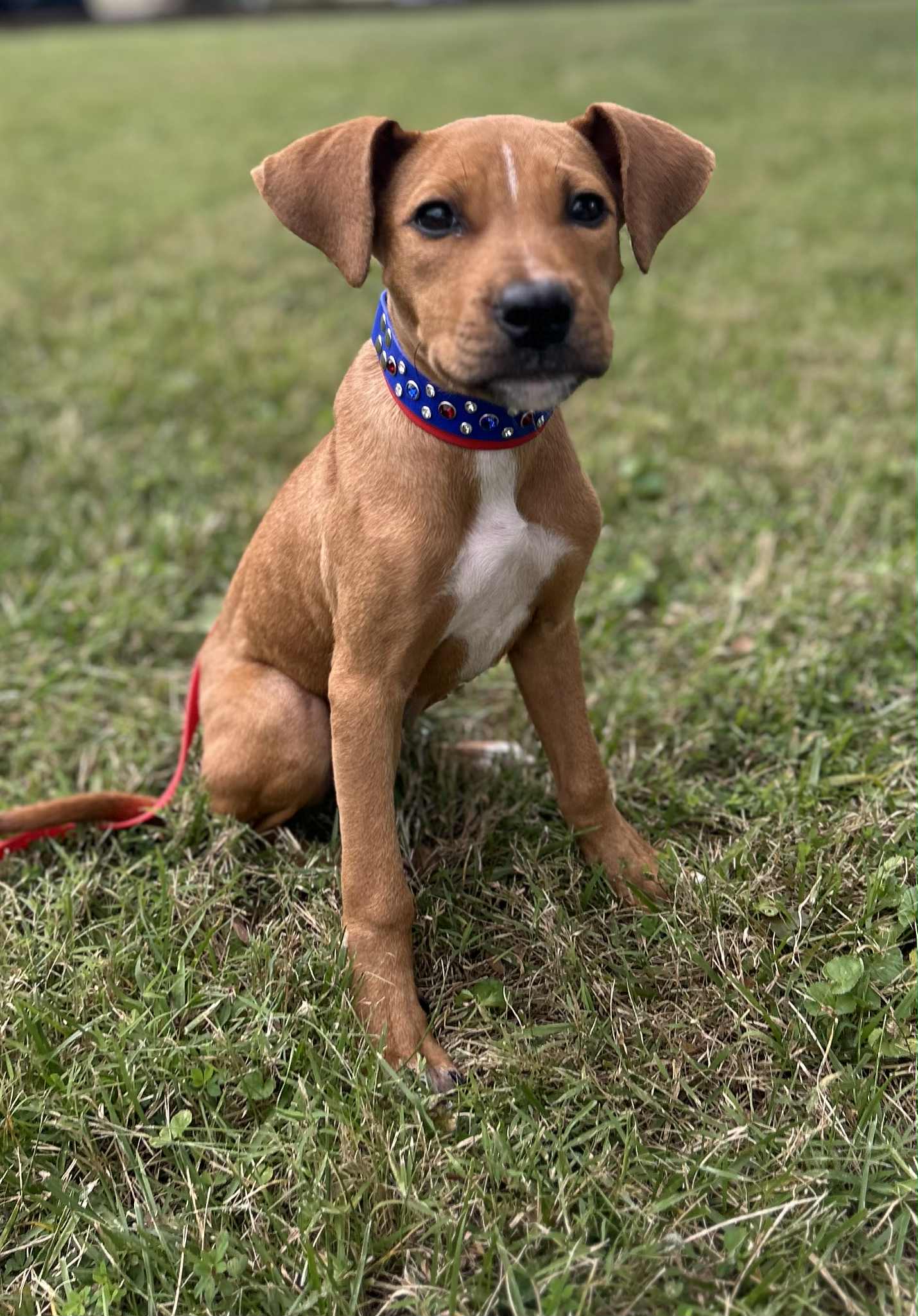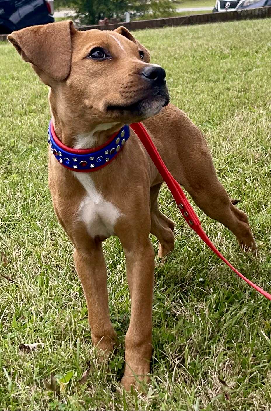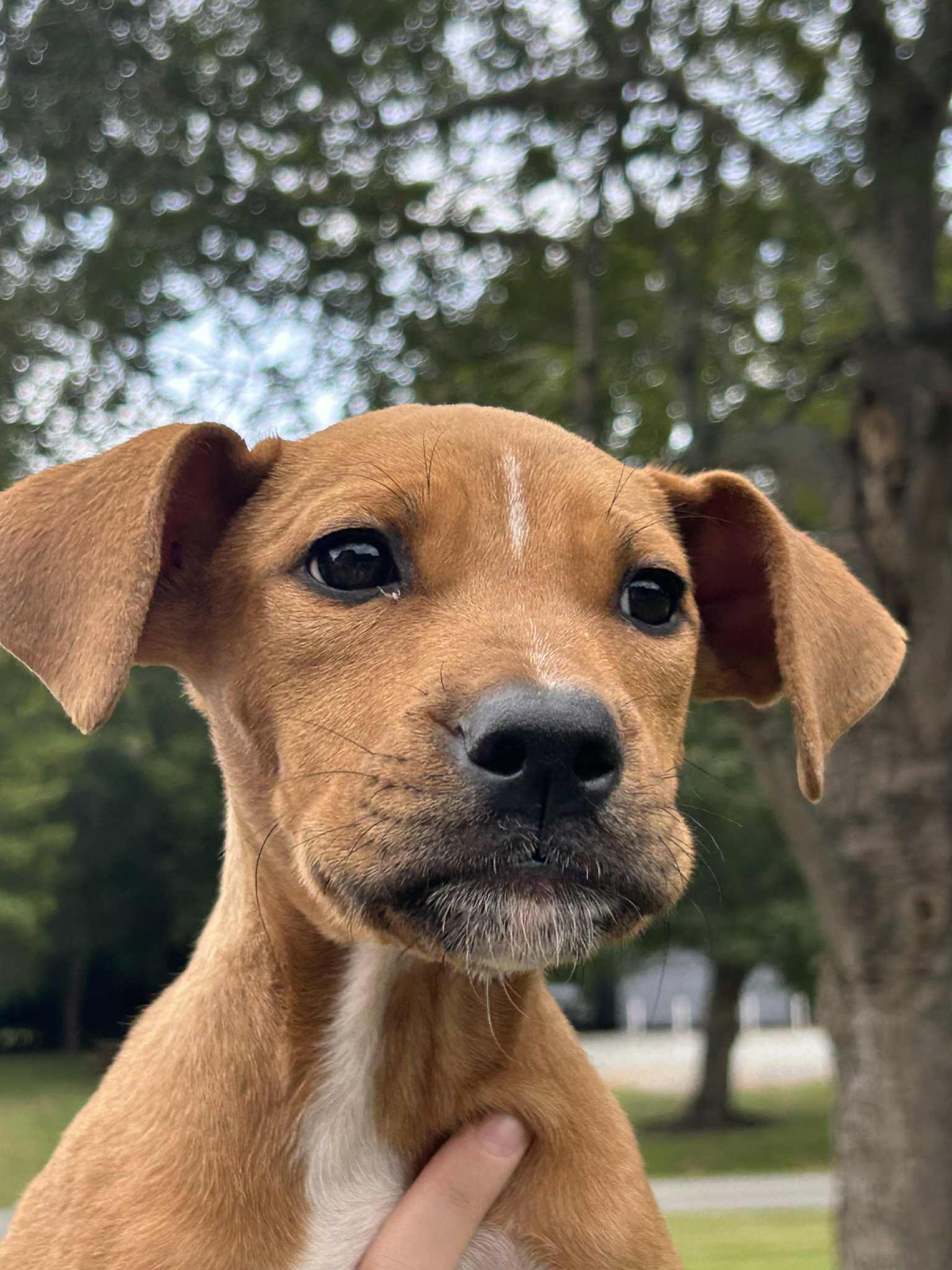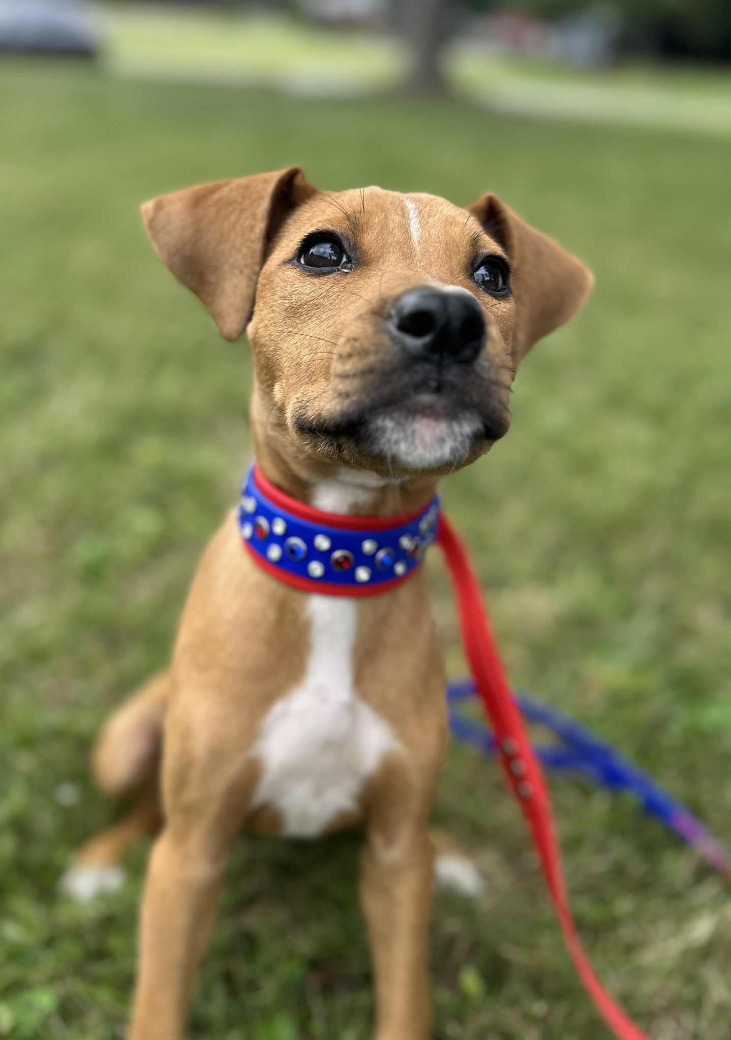 Eliza is such a pretty girl who seems to actually pose for her photos! Best guess is hound, lab, pitt-she is a heinz 57 as we like to call it! She is great with dogs and people (has not been cat tested but can be). Eliza is a very well mannered puppy who is going to be an amazing dog for a lucky family. She is affectionate, playful but not hyper, and well socialized. She is almost potty trained and is crate trained. Eliza is vaccinated, chipped, on preventions and is spayed