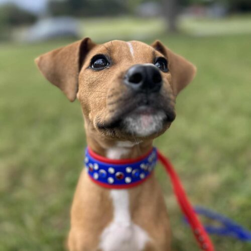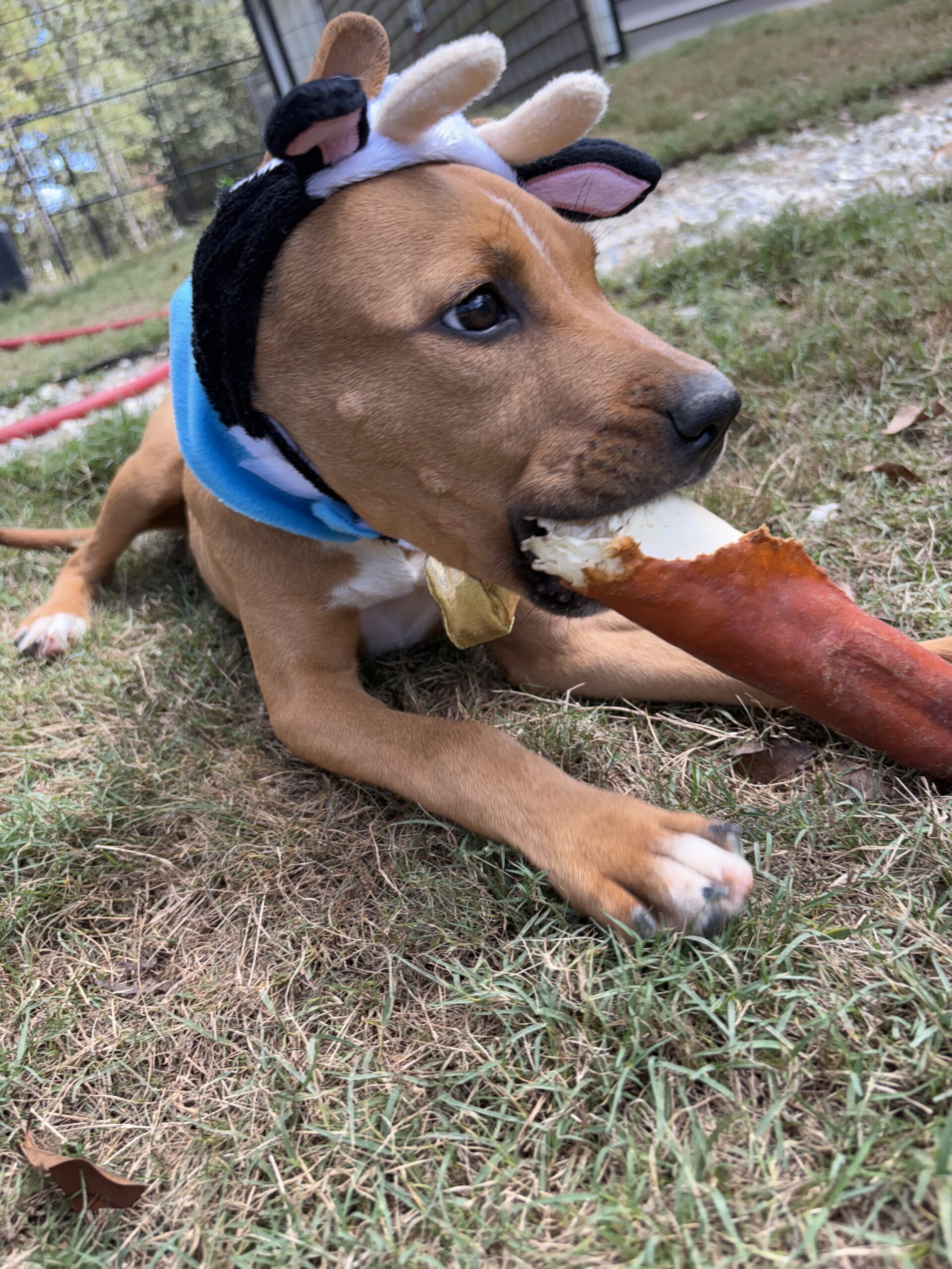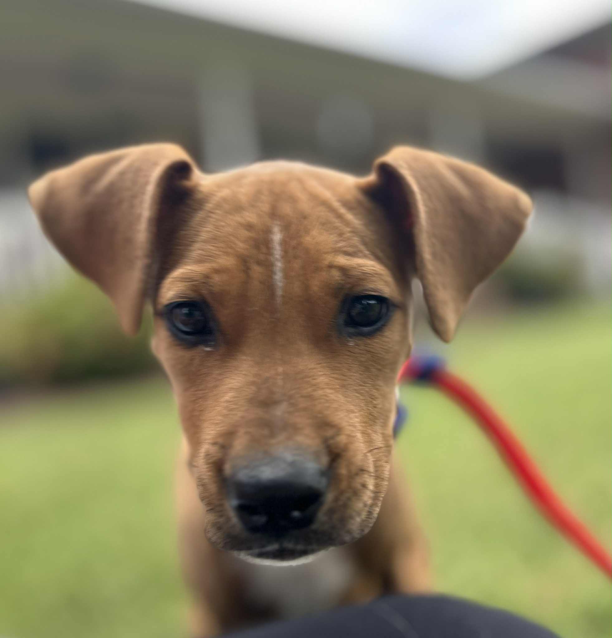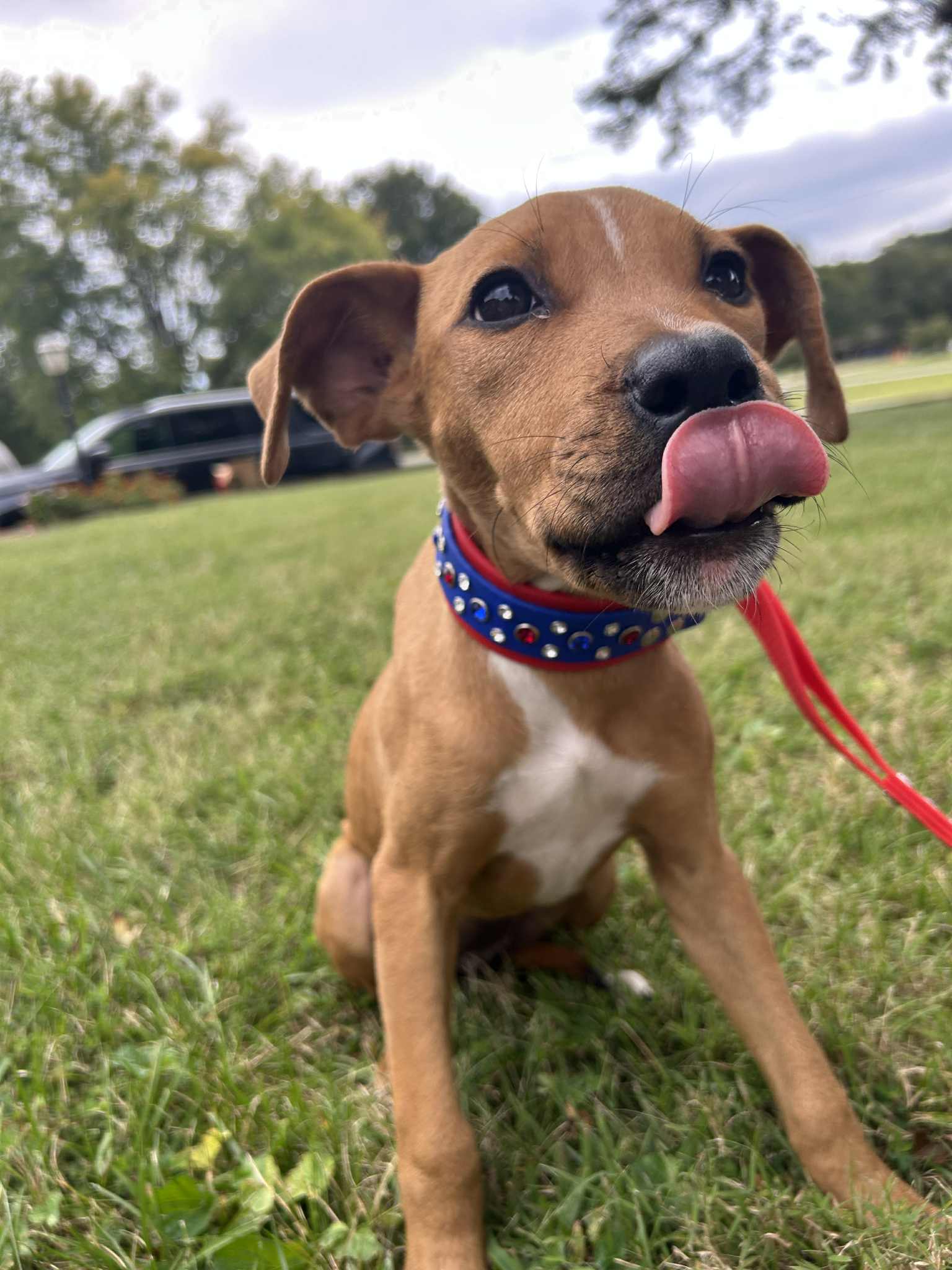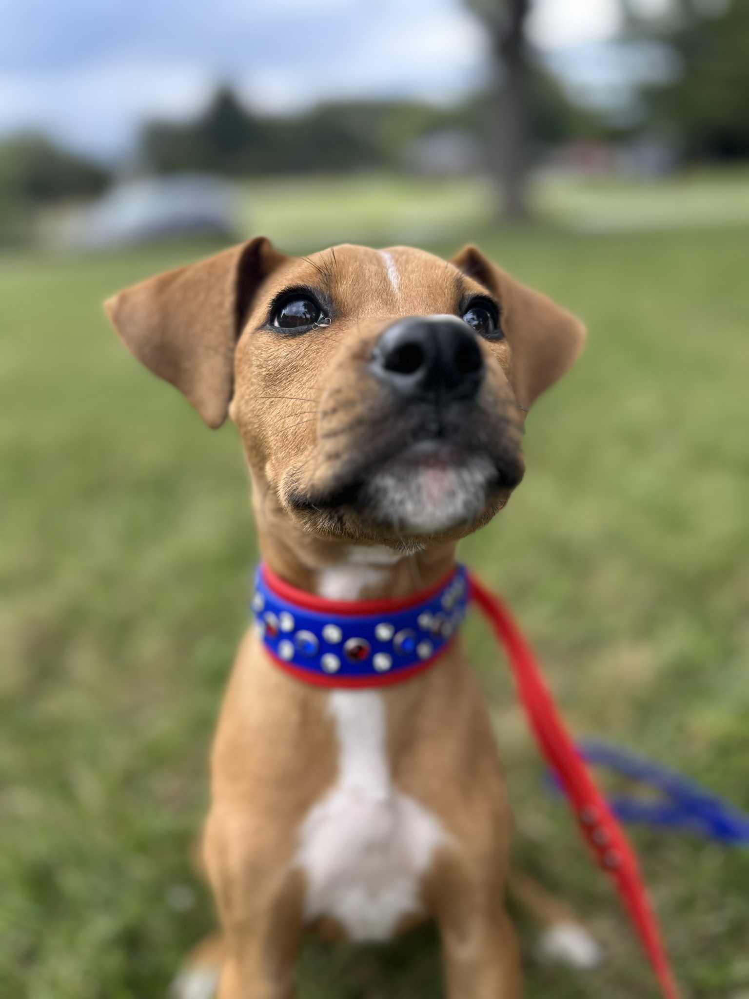 Eliza is such a pretty girl who seems to actually pose for her photos! Best guess is hound, lab, pitt-she is a heinz 57 as we like to call it! She is great with dogs and people (has not been cat tested but can be). Eliza is a very well mannered puppy who is going to be an amazing dog for a lucky family. She is affectionate, playful but not hyper, and well socialized. She is almost potty trained and is crate trained. Eliza is vaccinated, chipped, on preventions and is spayed