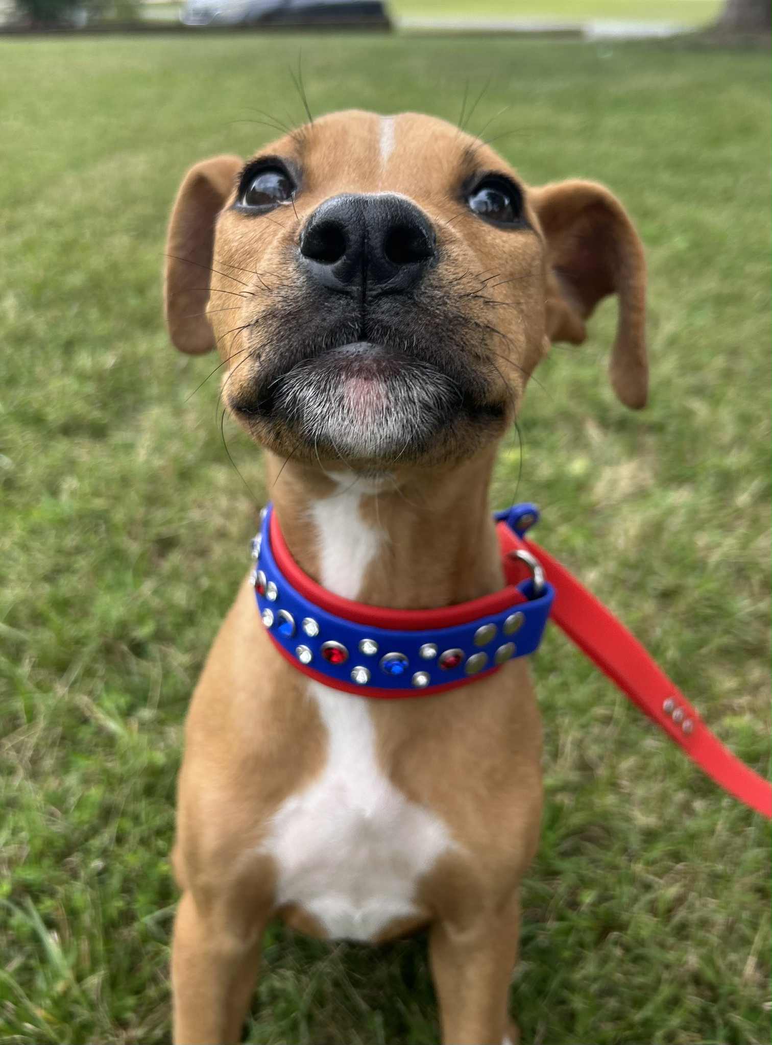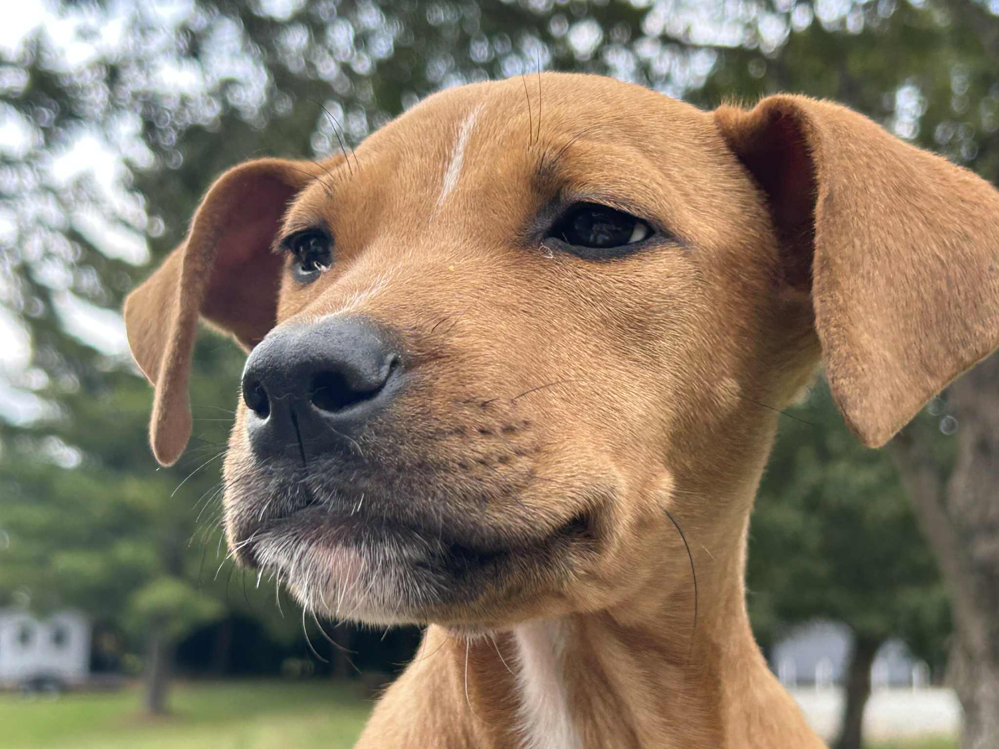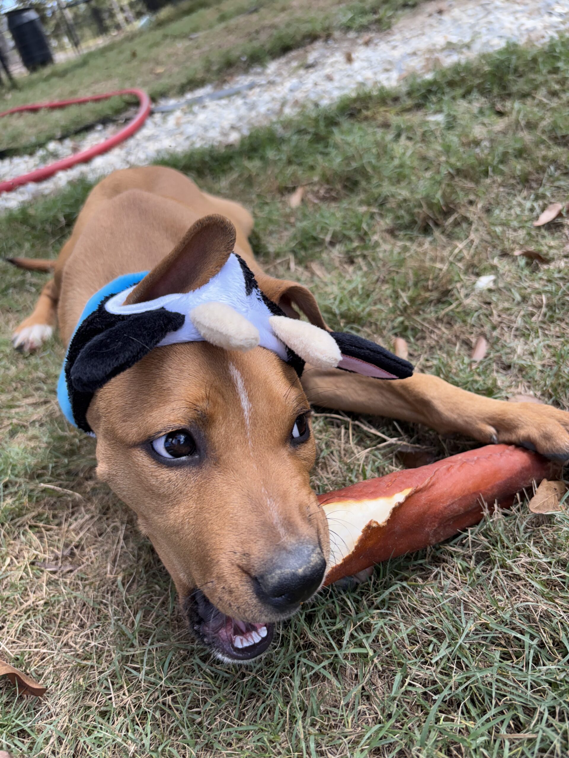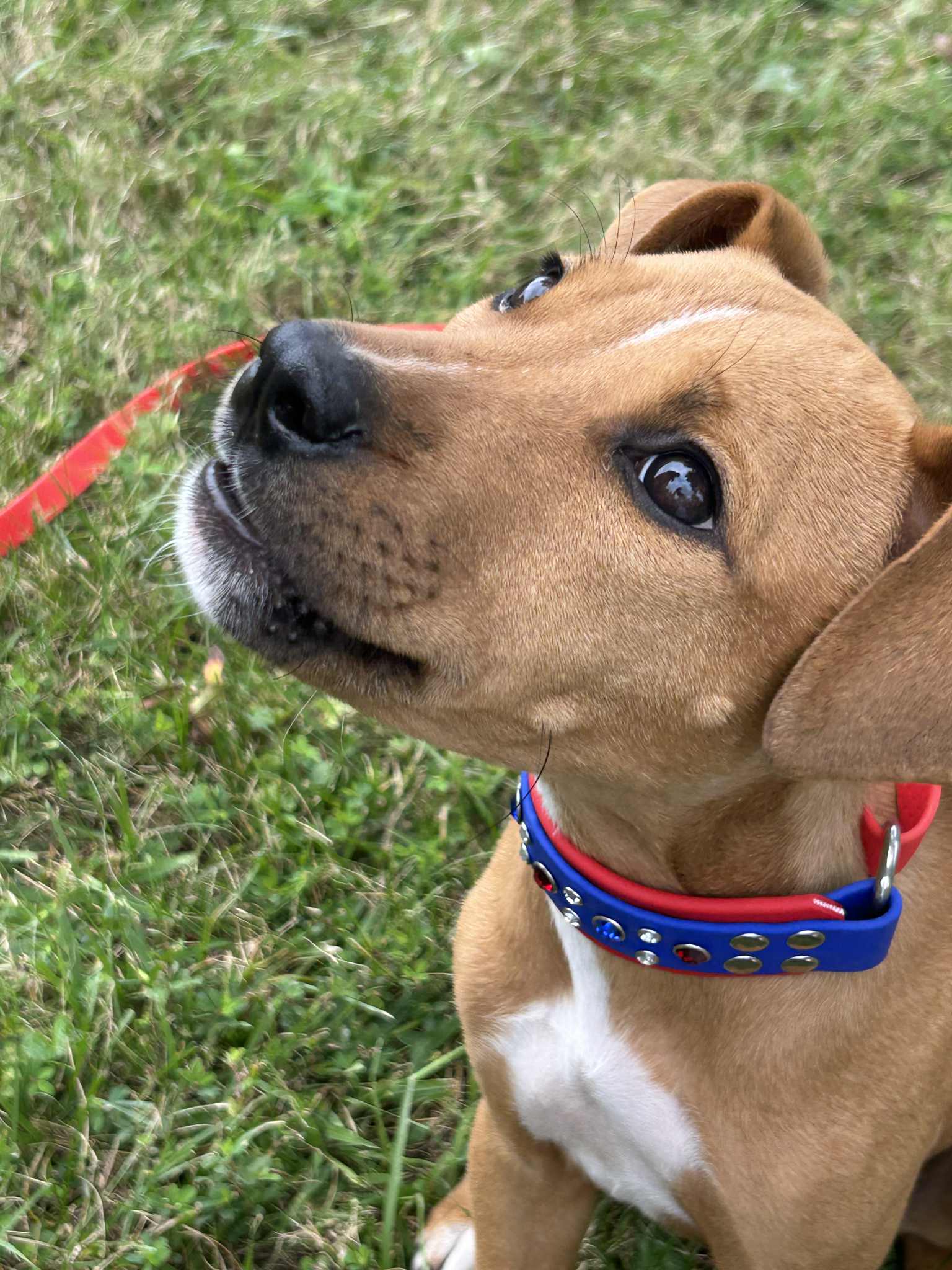 Eliza is such a pretty girl who seems to actually pose for her photos! Best guess is hound, lab, pitt-she is a heinz 57 as we like to call it! She is great with dogs and people (has not been cat tested but can be). Eliza is a very well mannered puppy who is going to be an amazing dog for a lucky family. She is affectionate, playful but not hyper, and well socialized. She is almost potty trained and is crate trained. Eliza is vaccinated, chipped, on preventions and is spayed