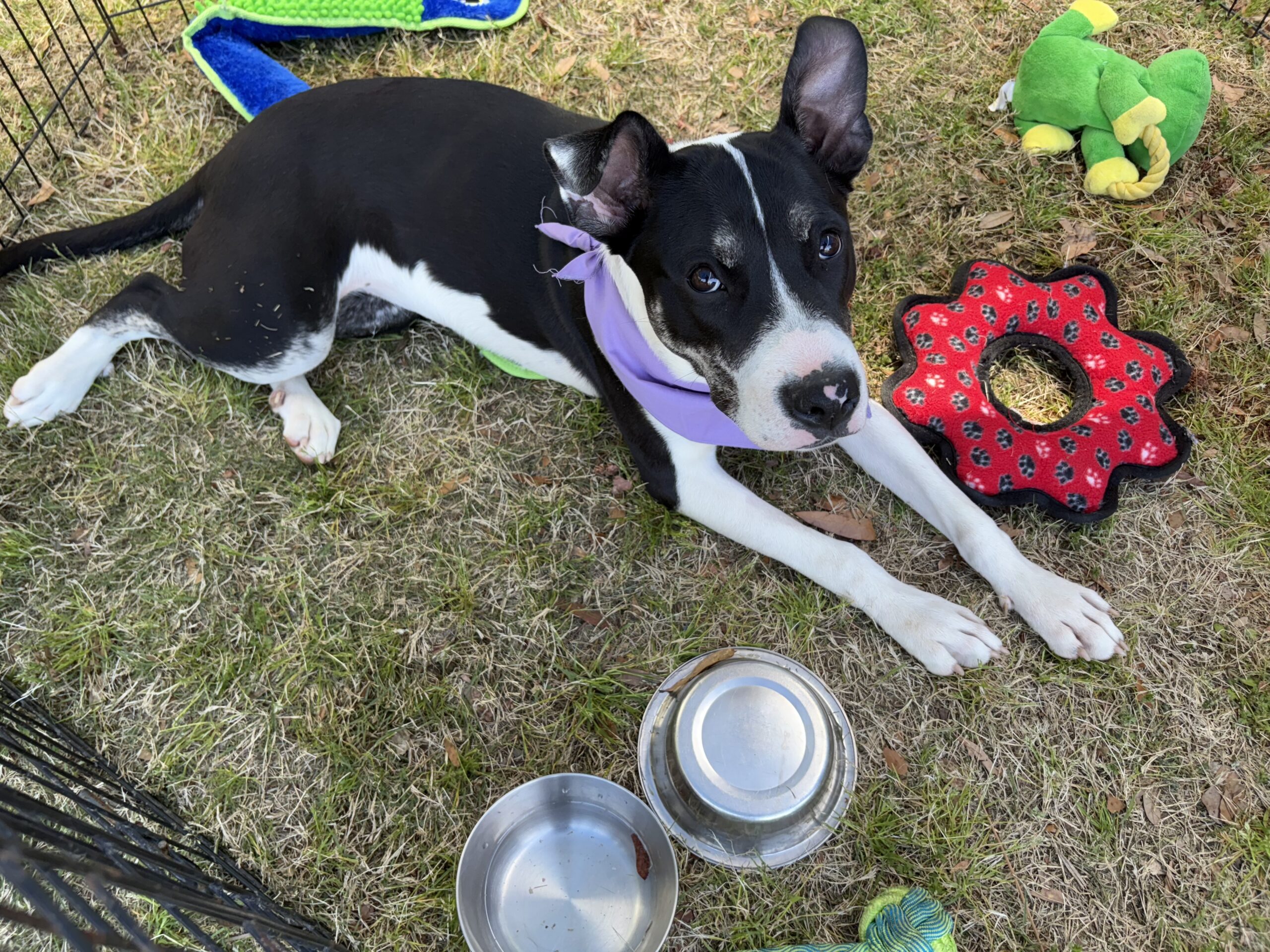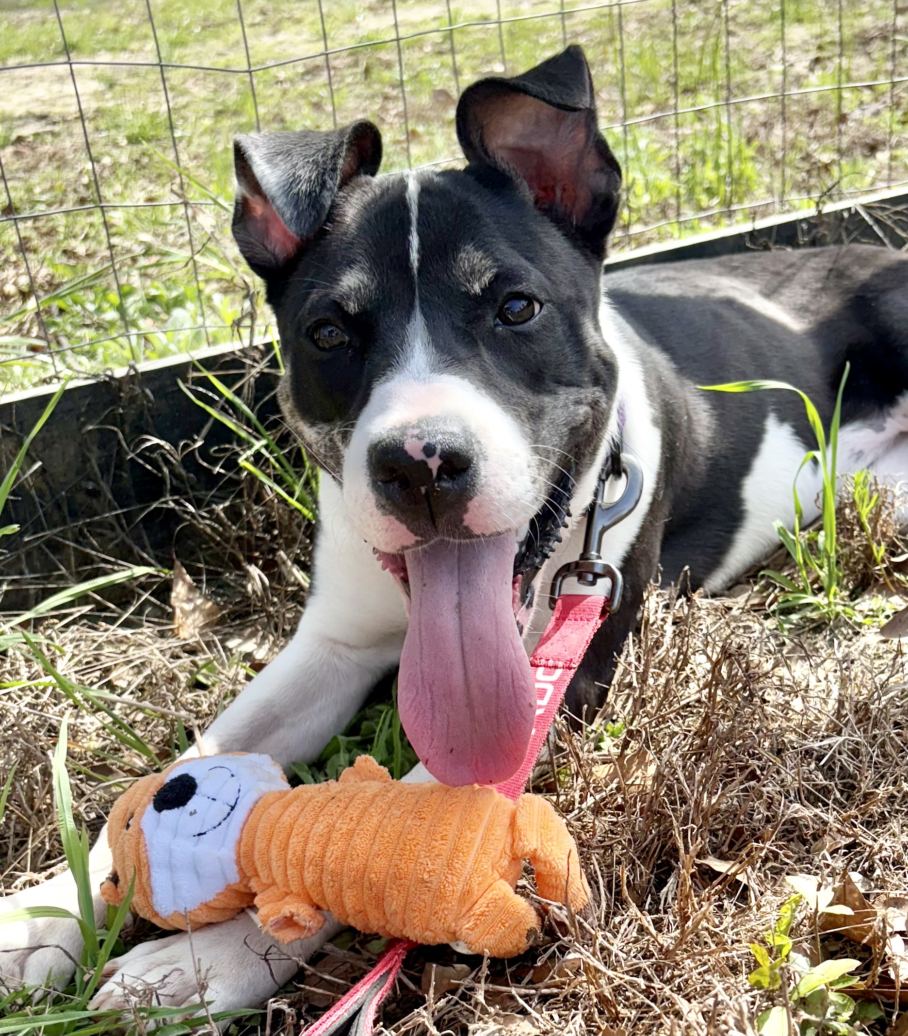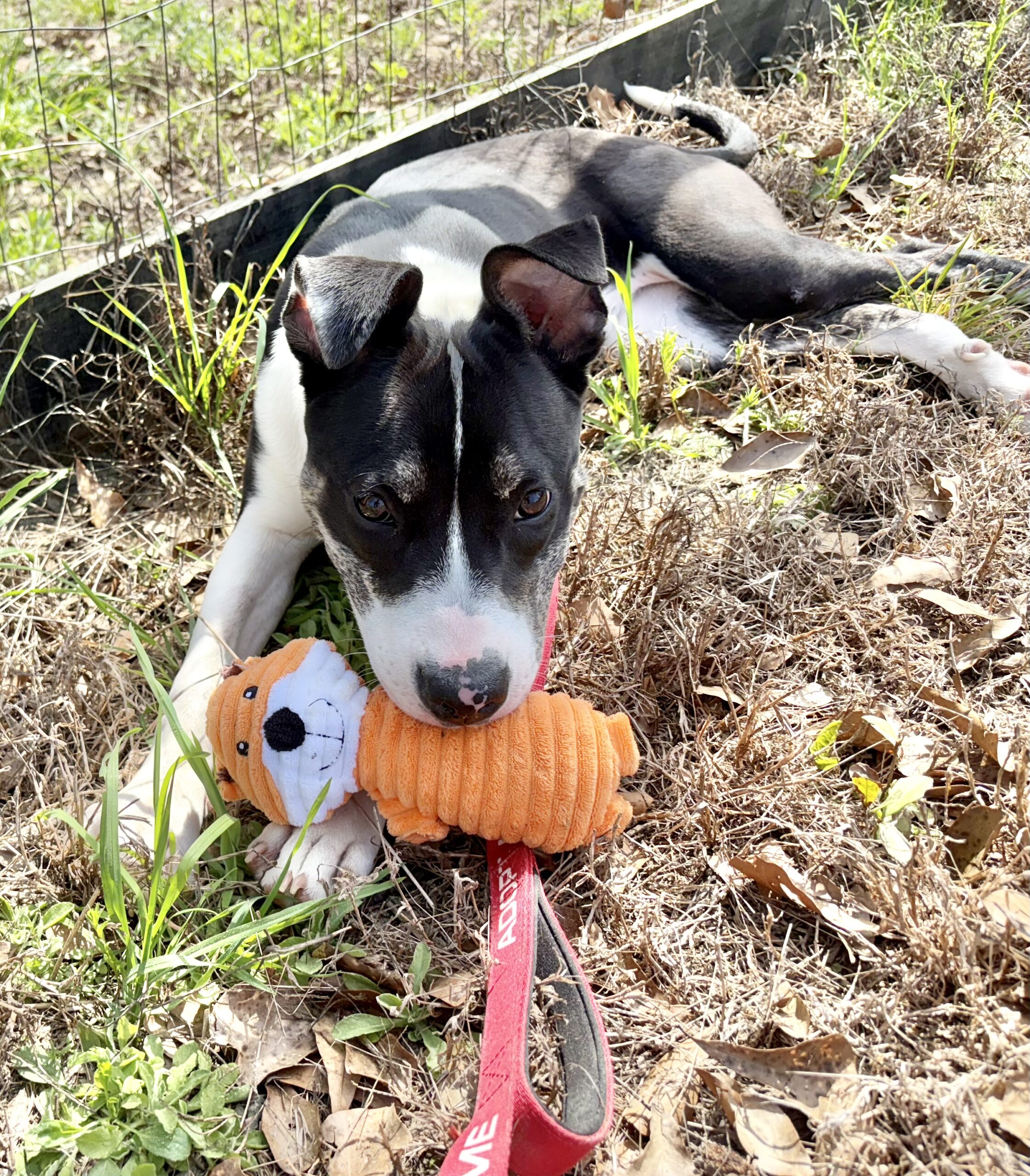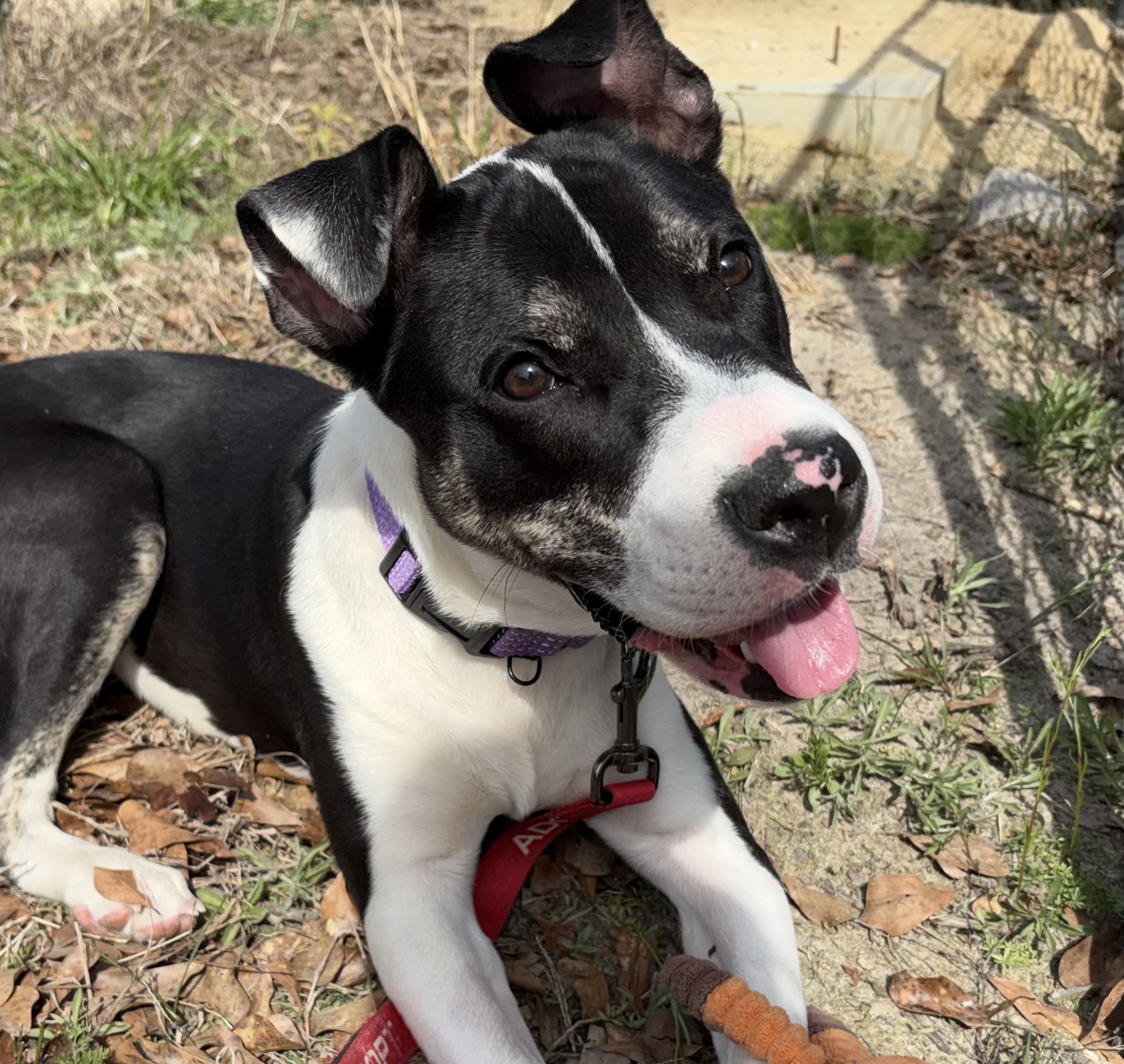is always up for a play session, loves exploring outside, and enjoys wrestling with her