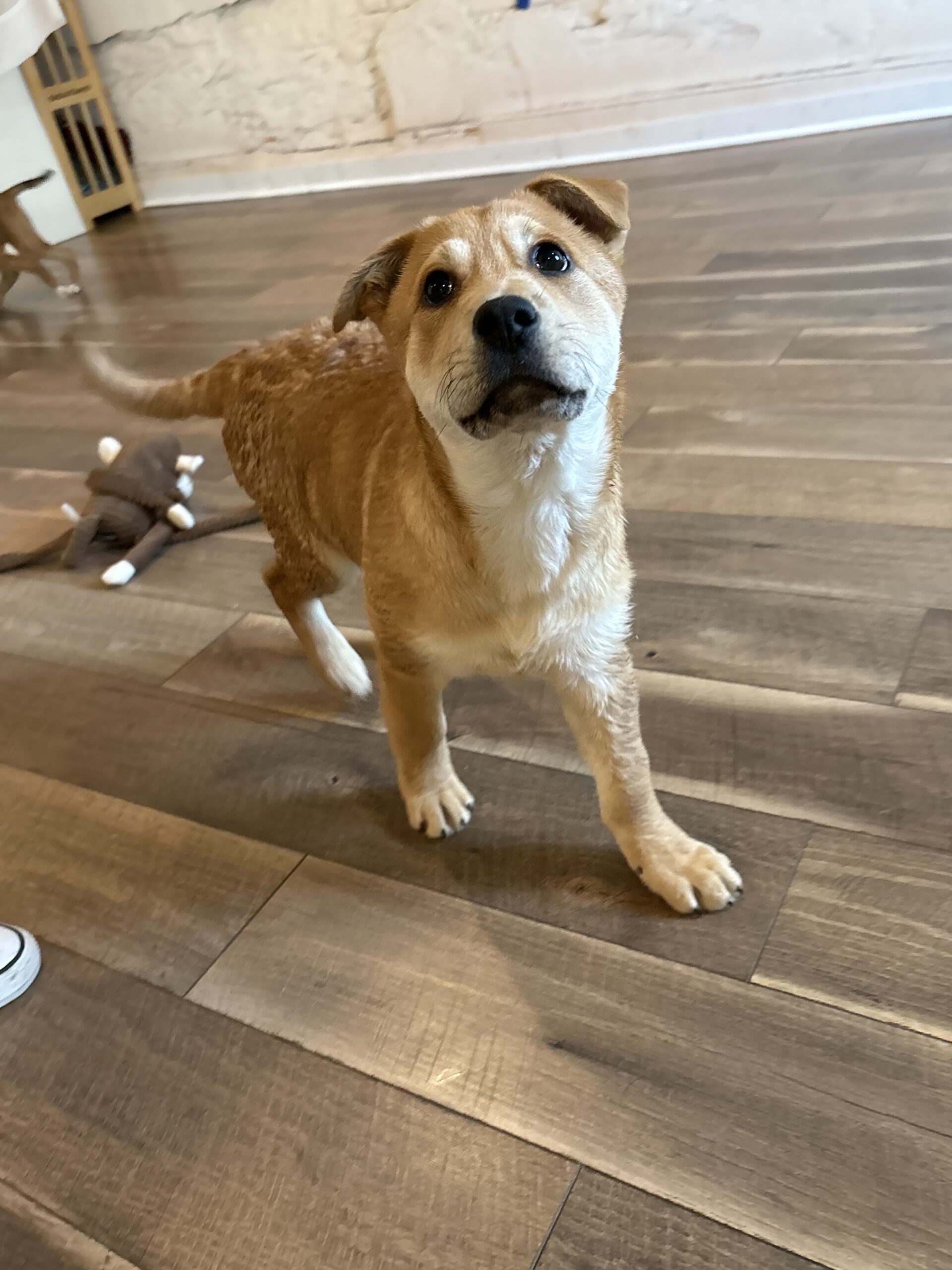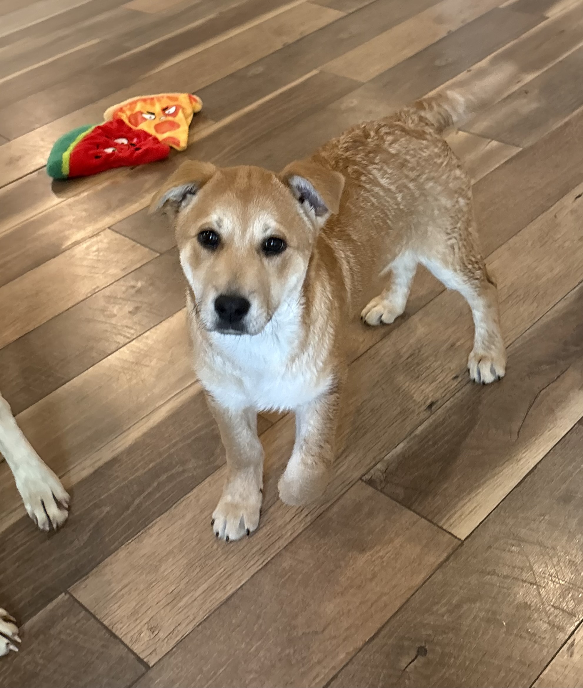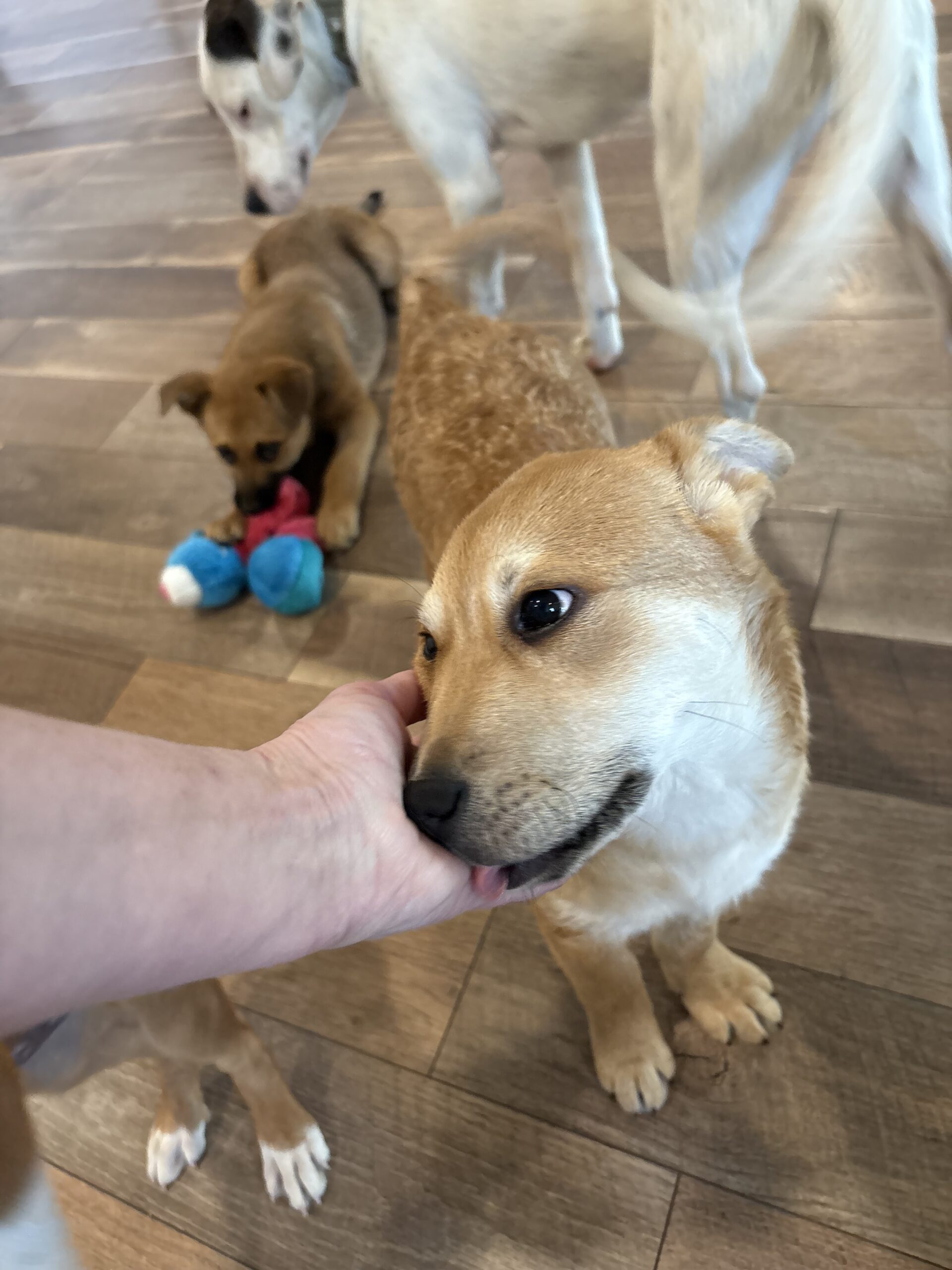 Flower Blossom is as pretty as her name! This adorable girl will steal your heart and the show! She is a gentle loving soul who is easy going and snuggly but will also romp and play with the other dogs in the home. She is 12 weeks old, vaccinated, chipped, and adoption fee covers her spay at 5 months of age She is working on potty and crate training so a home to continue reinforcing her training is key.