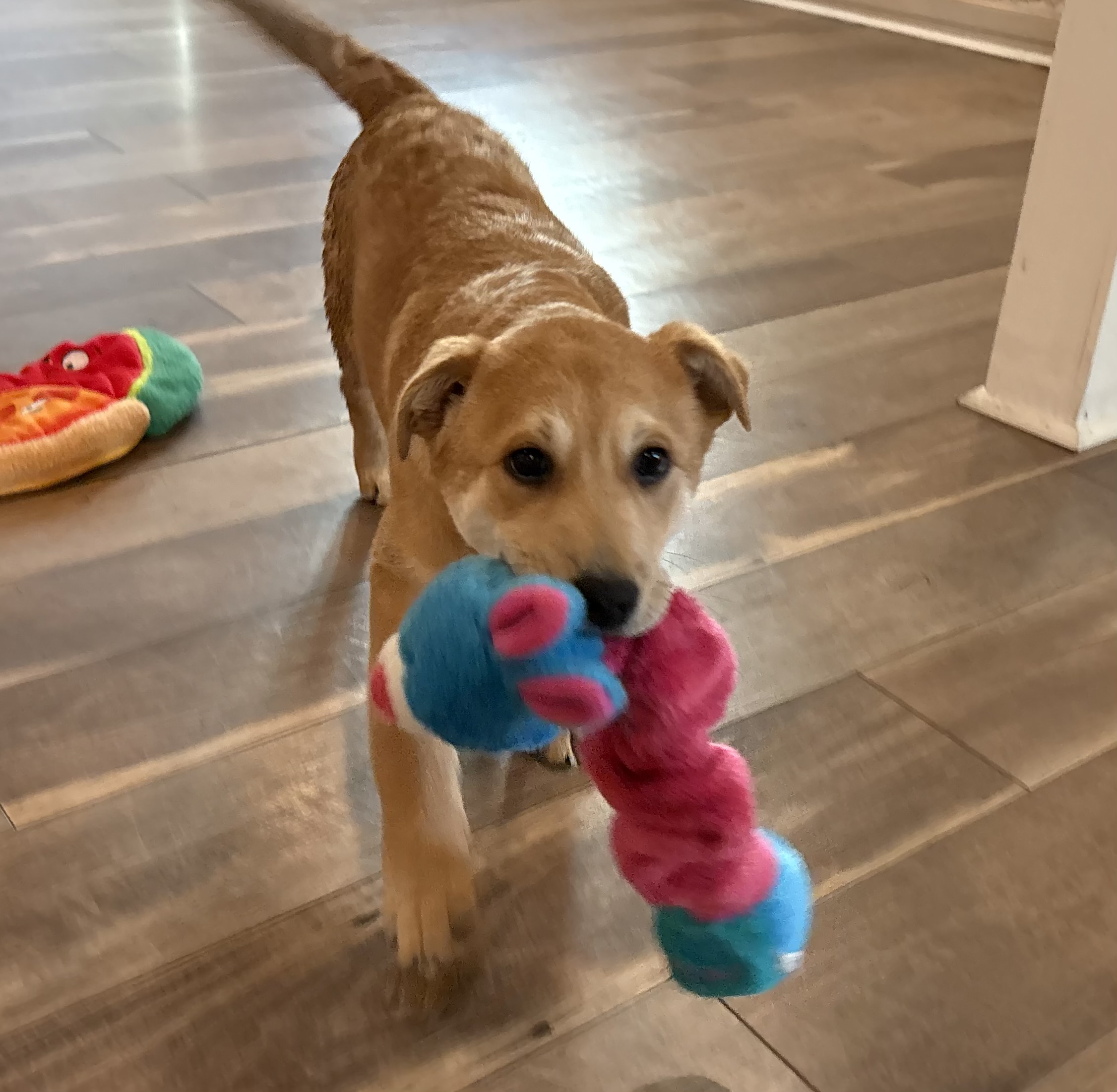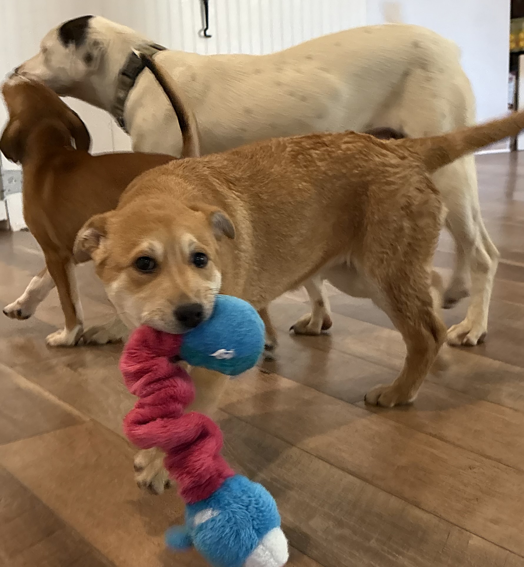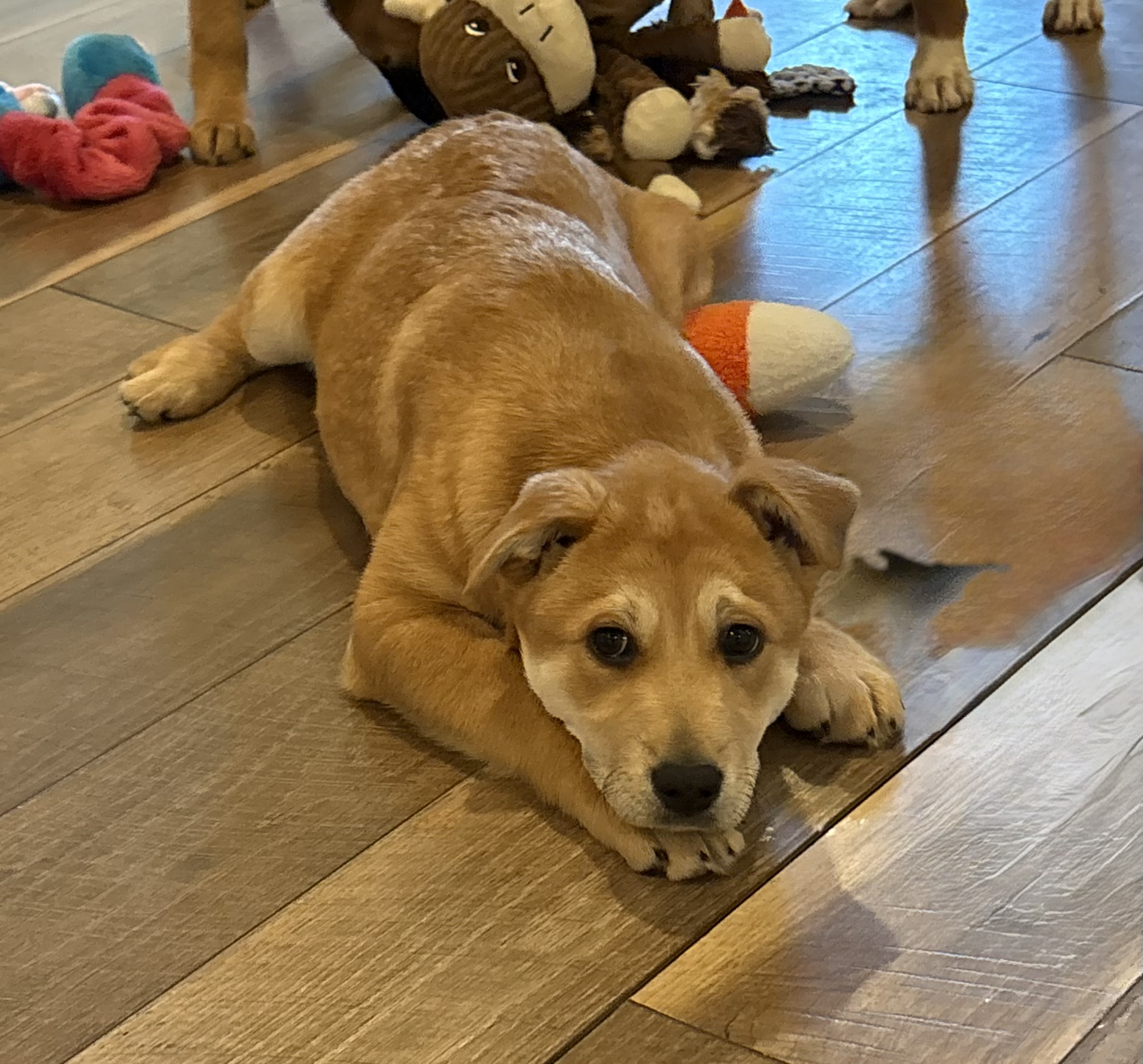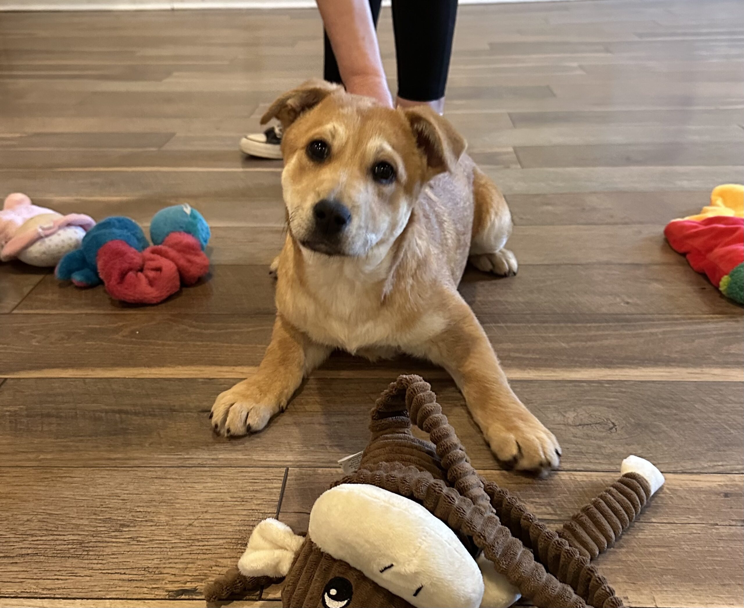 Flower Blossom is as pretty as her name! This adorable girl will steal your heart and the show! She is a gentle loving soul who is easy going and snuggly but will also romp and play with the other dogs in the home. She is 12 weeks old, vaccinated, chipped, and adoption fee covers her spay at 5 months of age She is working on potty and crate training so a home to continue reinforcing her training is key.