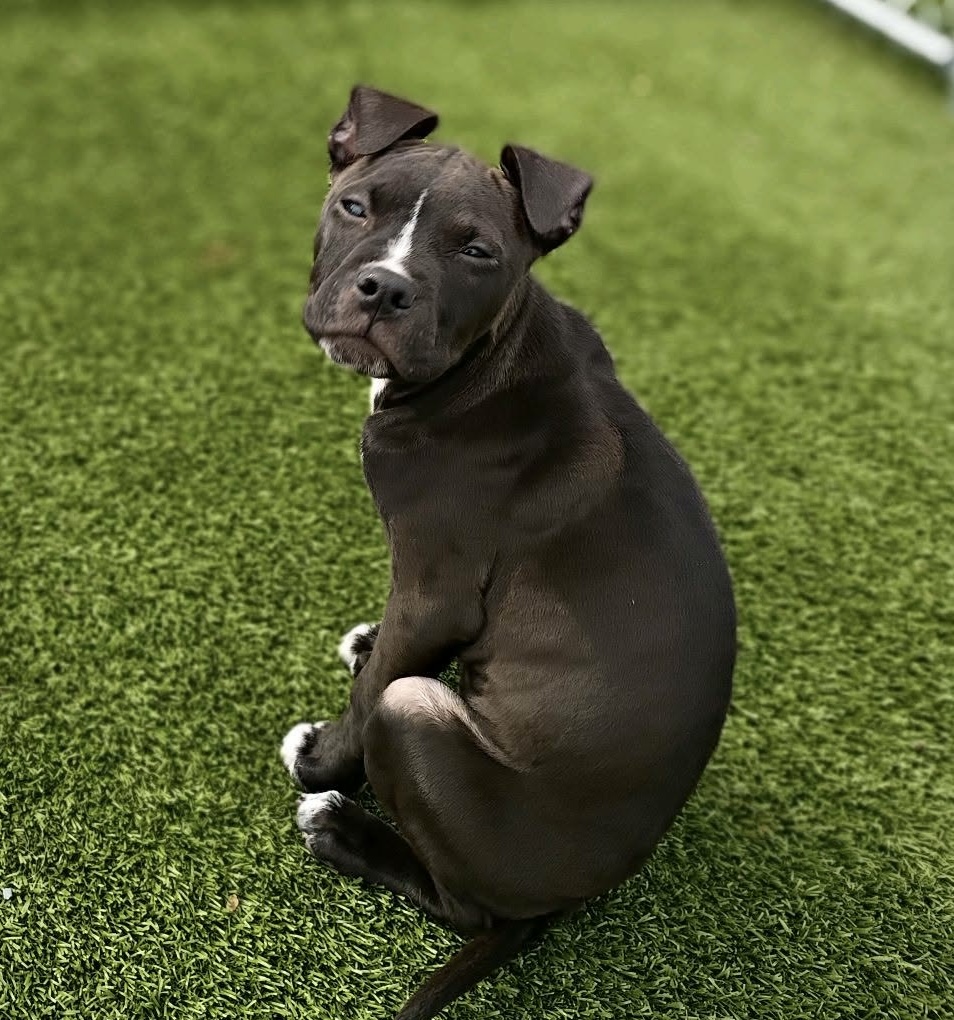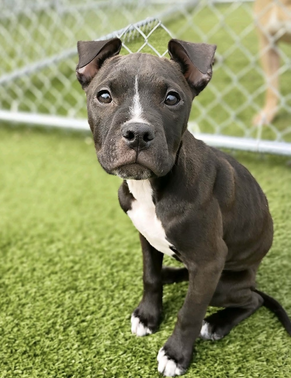 Meet Lucy. Don't let her pouty face fool you She's an absolute happy girl who loves cuddling and snuggles. She will come to you and ask to be up in loved on. She's a super sweet baby and she's also very smart. She's food motivated which makes her very easy to train. She's such a smart girl she already knows how to sit. She is vaccinated and microchipped. Her adoption fee does include her spay when old enough. Adoption fee is 375