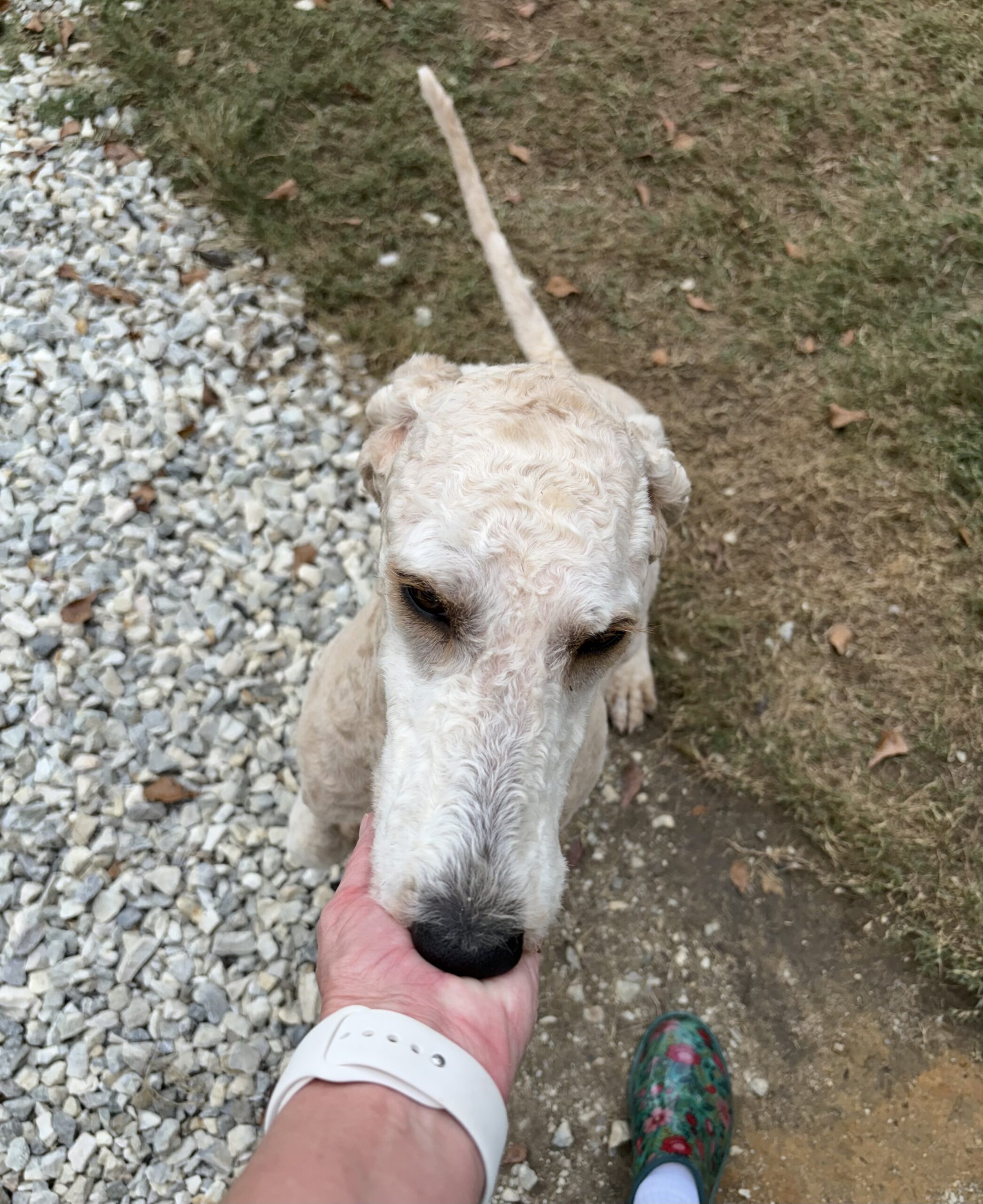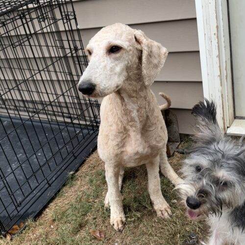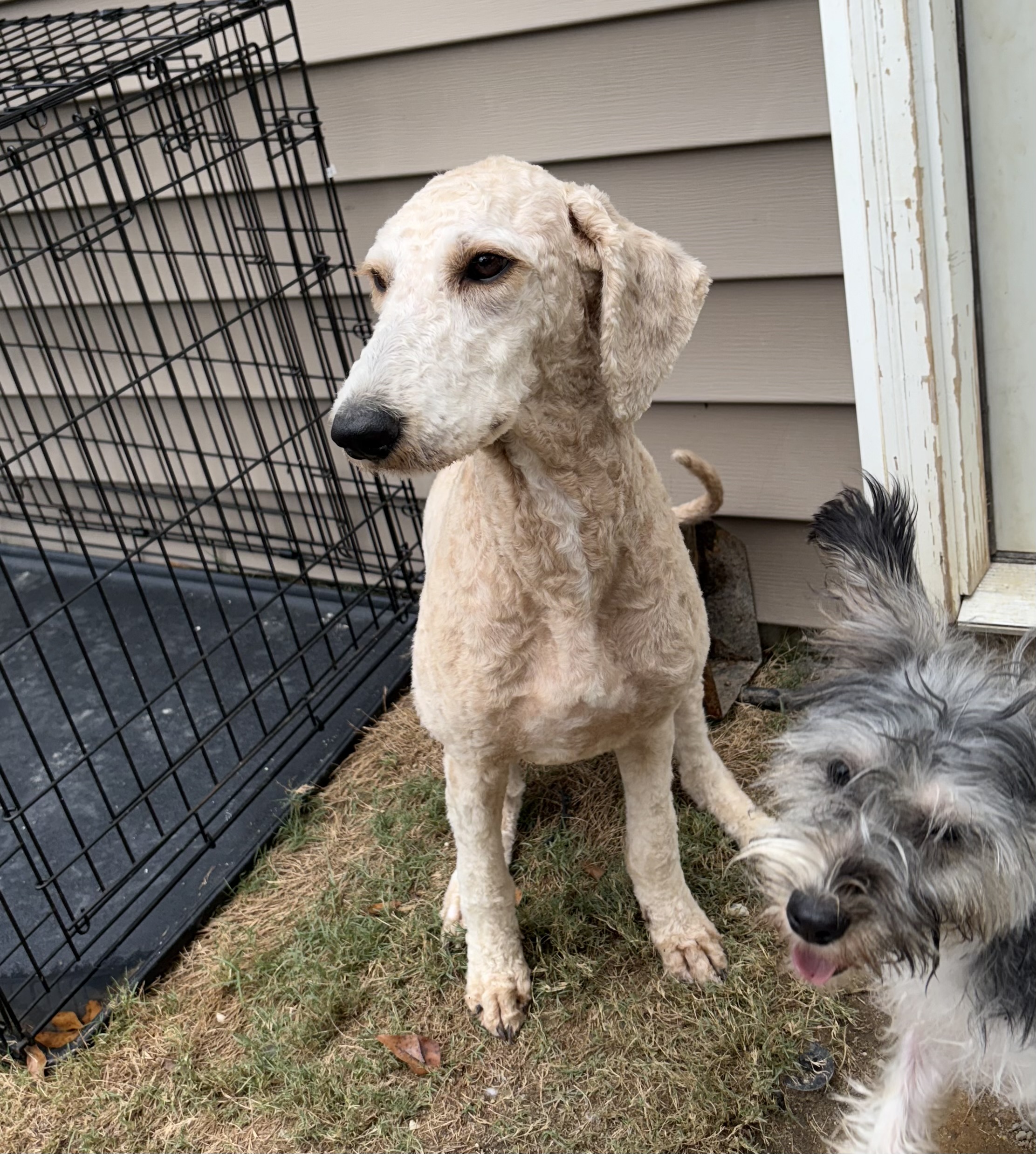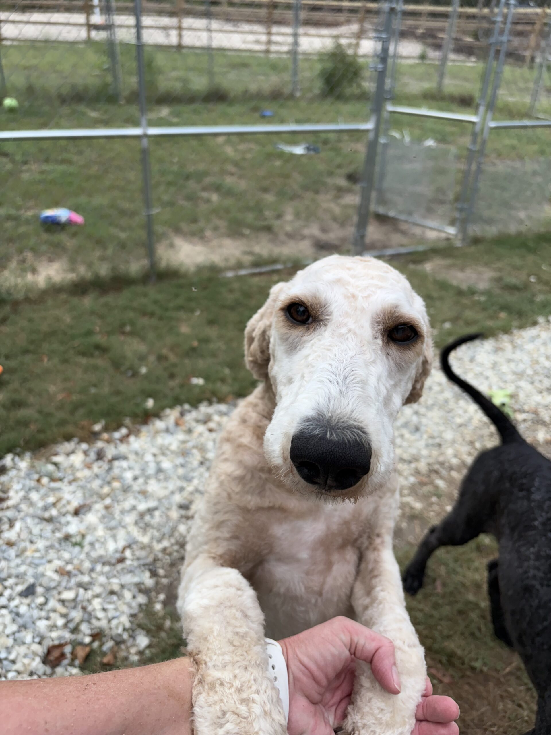 This 1.5 yr old weighs 47 lbs. She is not just a gorgeous apricot color and photos do not do her justice. She is very much a velcro dog and wants to be touching you. She is good with dogs and seems to need to be with one so we feel she would do best with a dog in the home with her. She has nt been cat tested but can be, She is a very sweet girl. She arrived in rescue with her brother and has now been fully vetted. She is potty trained. We are still learning more about her and will update her bio as we do.