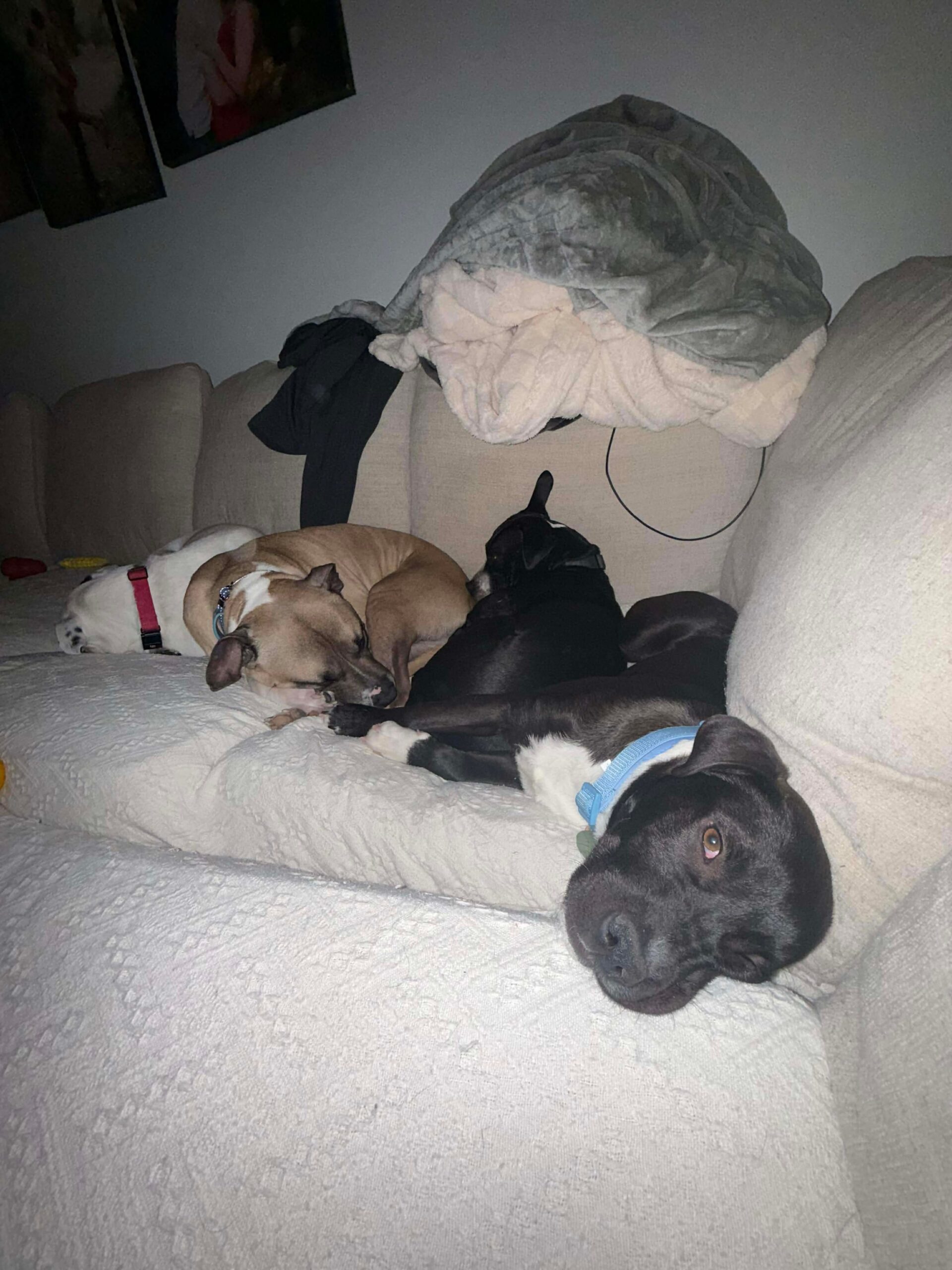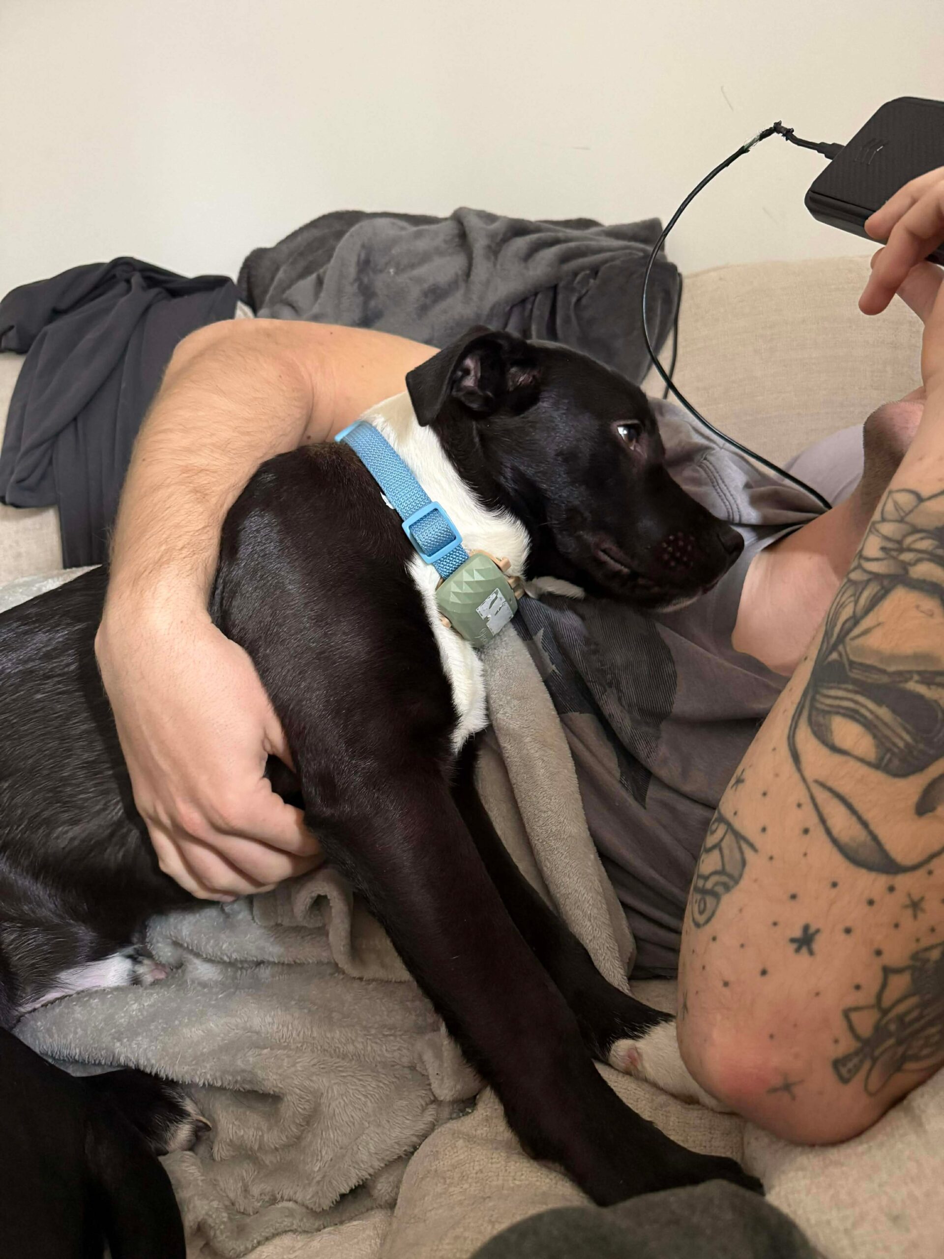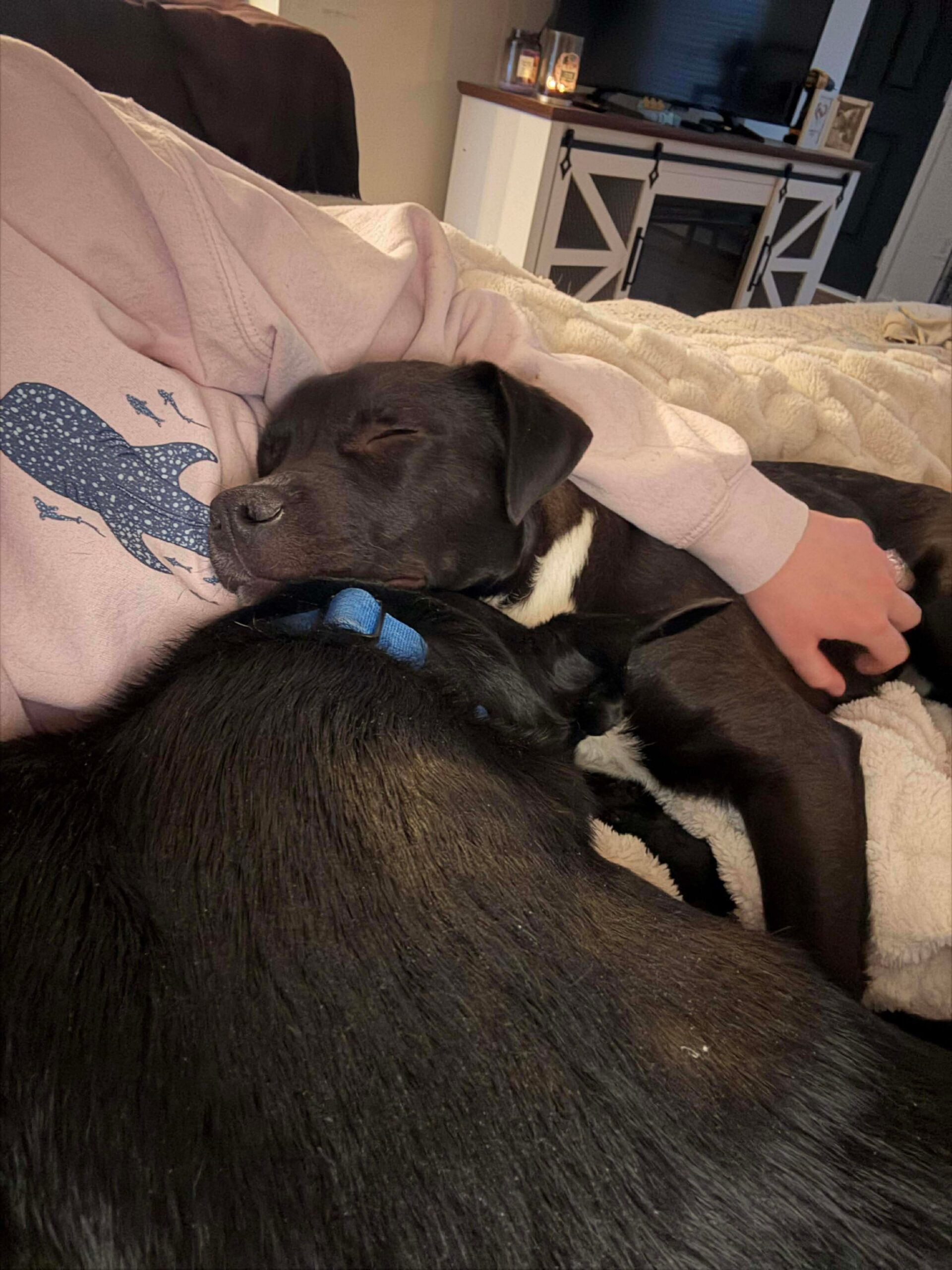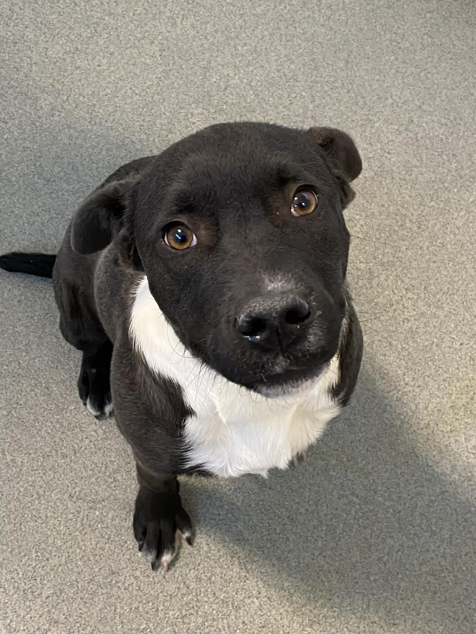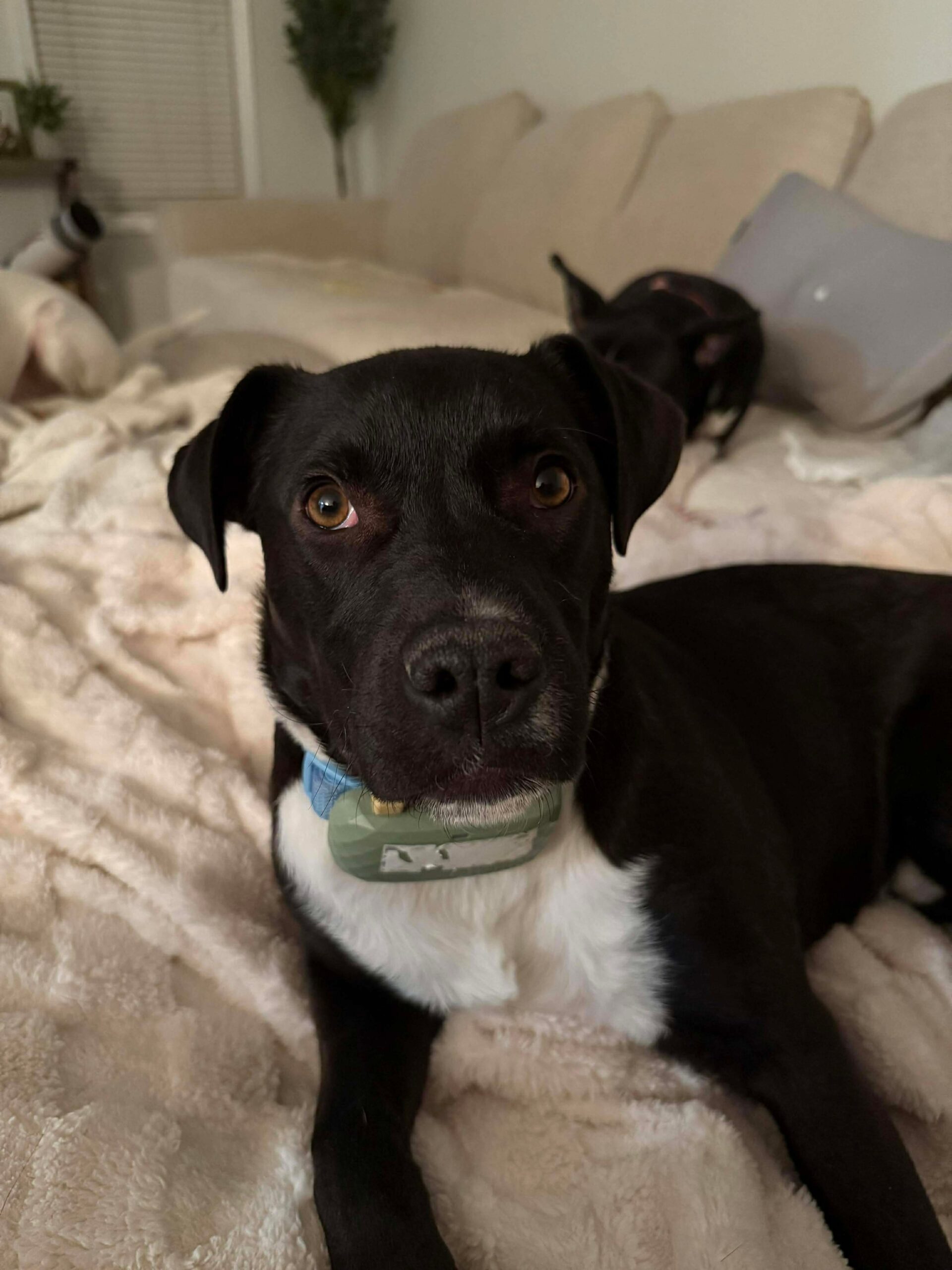Mumble Is a playful fun boy! he has medium energy he knows how to calm down and snuggle. Mumble is also crate trained and knows how to ask to go out to go potty. He does still have some accidents so he will need to be in a home to continue his potty training. He's a little bit nervous on the leash still but is catching on quick. He would love another dog to play with or to have play dates. He's still puppy need somebody willing to work with the training but overall he's a very good boy and learns very quickly. He's a little bit head shy and will submissive potty with new people at times. So he's going to definitely need a family that wants to continue socializing him. His adoption fee is 375. That includes his neuter, vaccines, microchip and the microchip registration, and he is on preventions and has been dewormed.