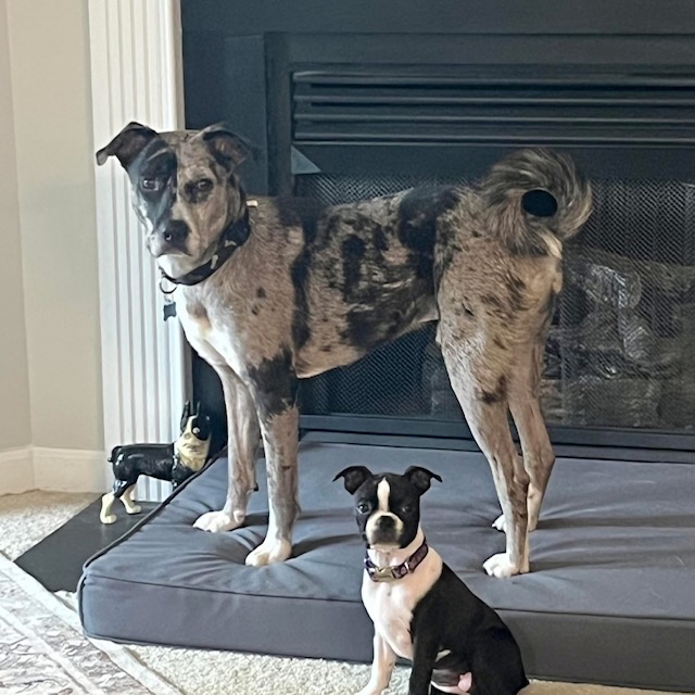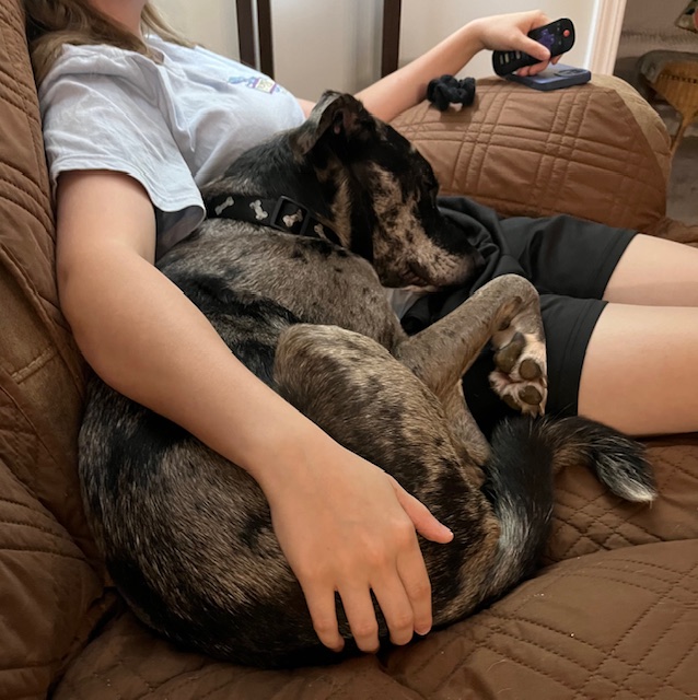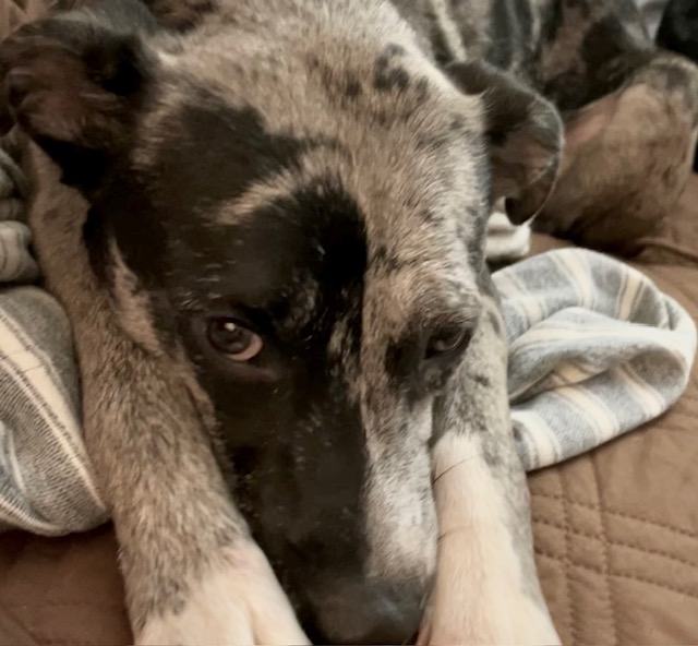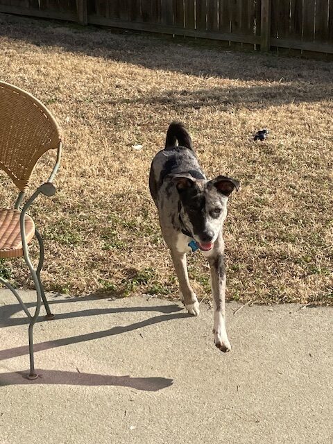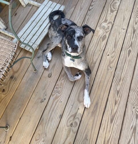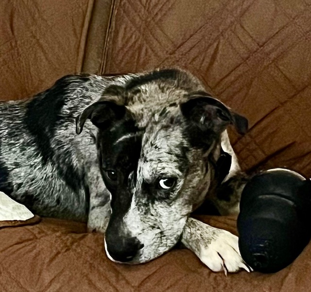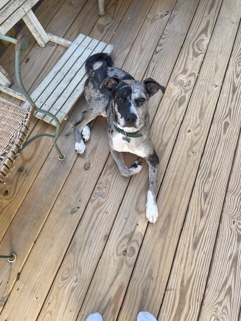 Patch is a friendly, loving companion! He is 2yo and weighs 43lbs. He is housebroken/UTD on shots. He loves his people and will do best in a home where people are frequently home during the day or with another high-energy dog to play with. He knows sit/stay/place. He loves exploring, chewing bones, and snuggling!