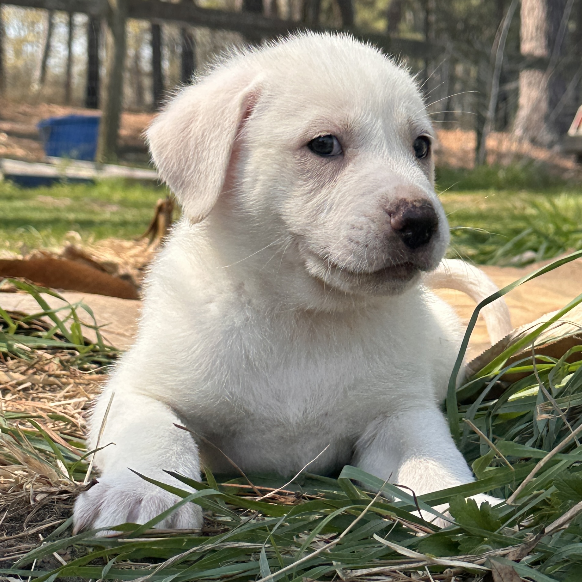 This litter has been lovingly fostered since birth. Mamma is hound and dad is suspected to be a pyrenes. They are going to be large dogs! They are vaccinated, chipped and been dewormed. Adoption fee is $375 and includes spay/neuter at one of our vets at 6 months of age.