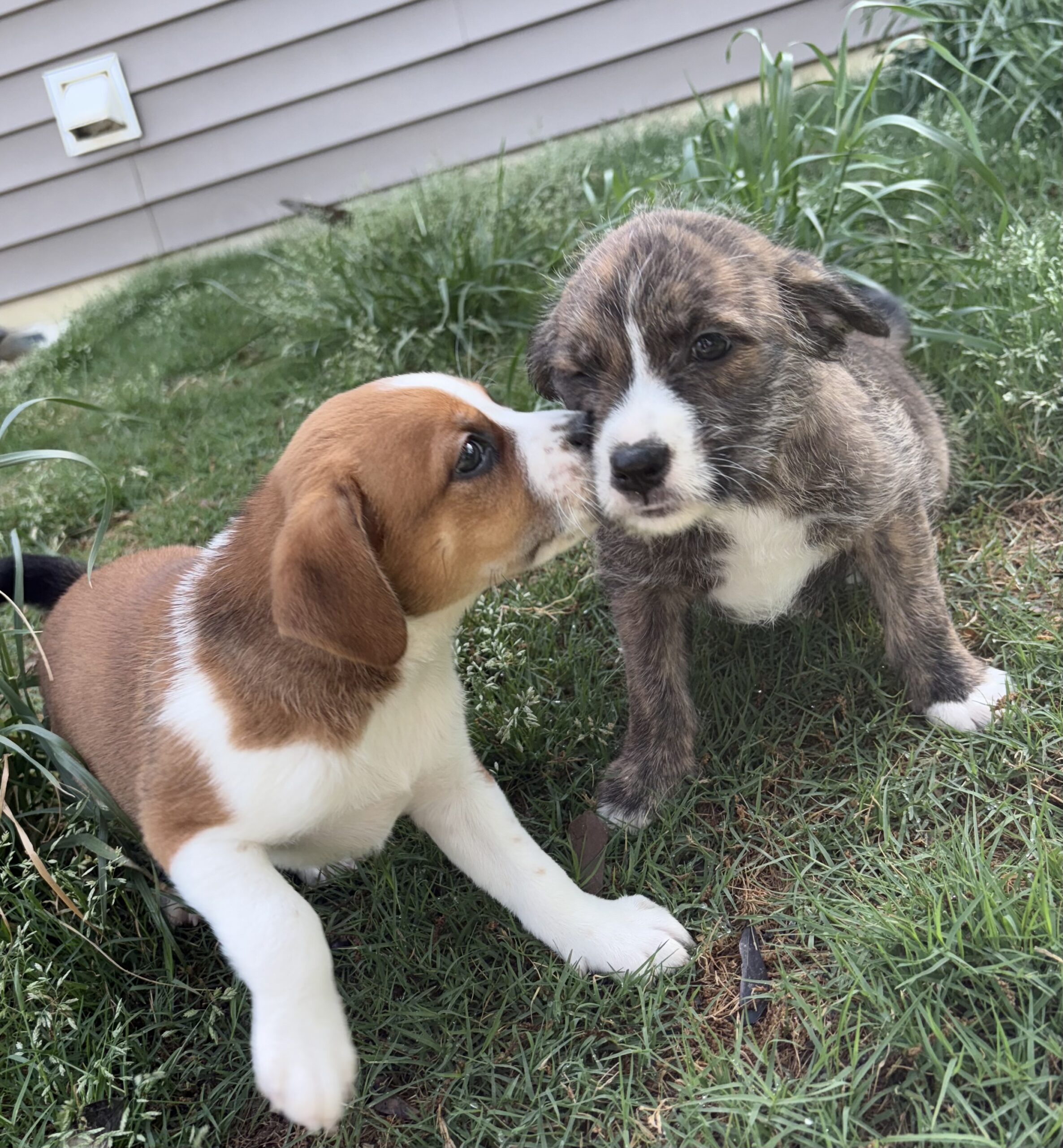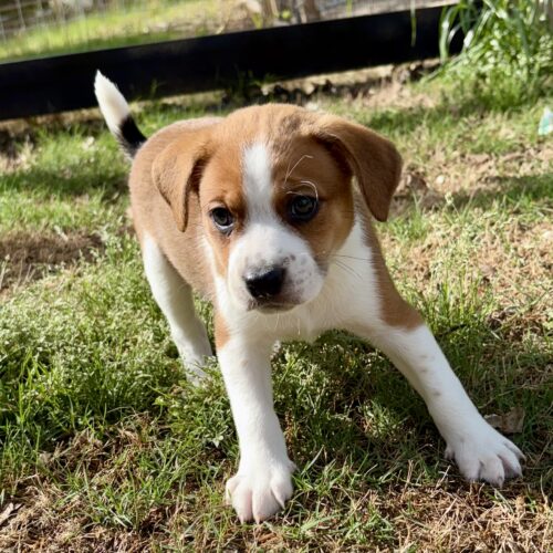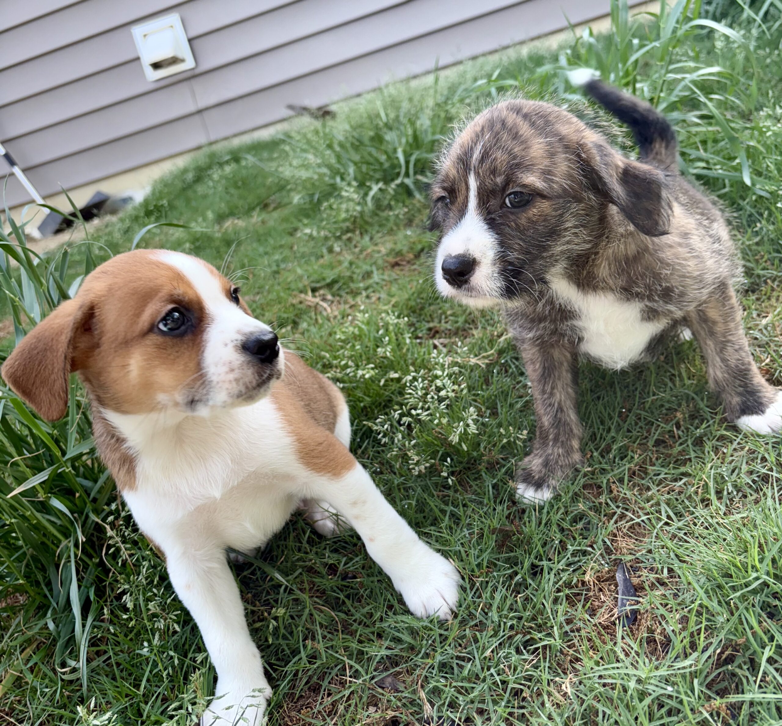 The lion King family has been in the rescue since they were two days old. They are used to people, and lots of other dogs. They are super sweet and social. Mamma is 28 pounds and has a wired hair coat. She looks like an Aussie. She even has the docked tail. We do not know what daddy is. Best guess is they will be medium sized dogs.
