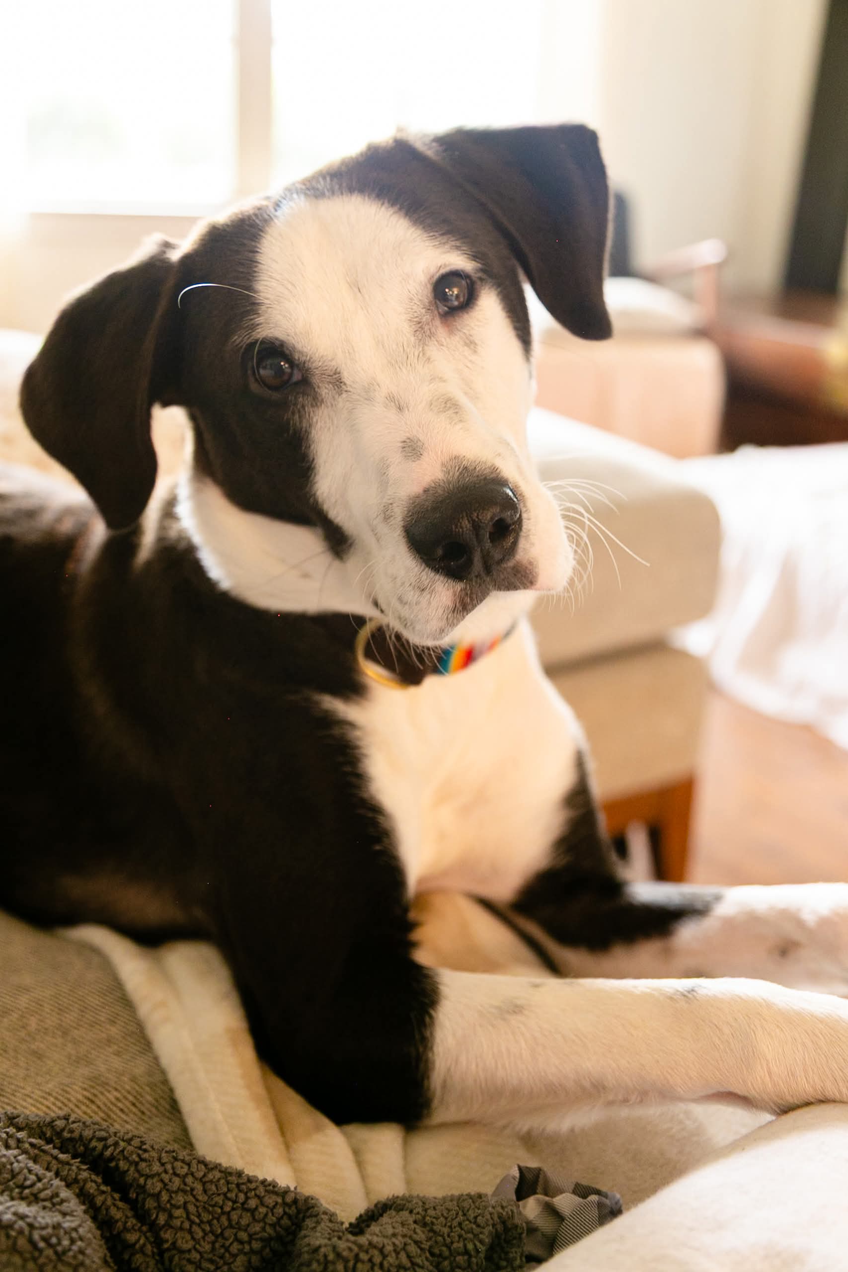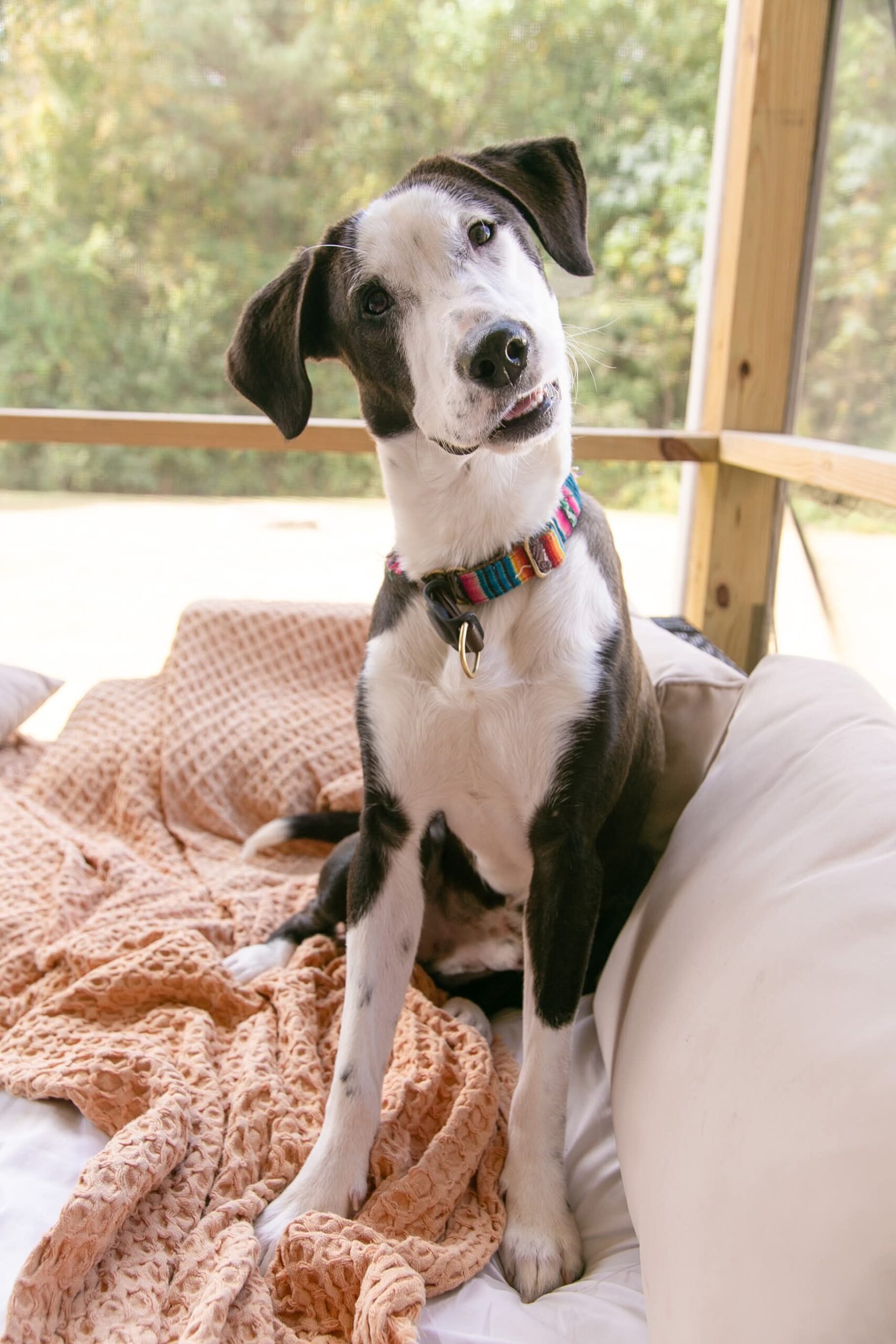 Timon is a shelter rescue who was saved by It Takes A Village Rescue, NC just in the nick of time! This handsome boy is as gorgeous on the inside as he is on the outside. His rich, dark chocolate and white coat is as soft and warm as his heart, and the way he melts beside you in bed at night or beside you on the couch will melt you too.