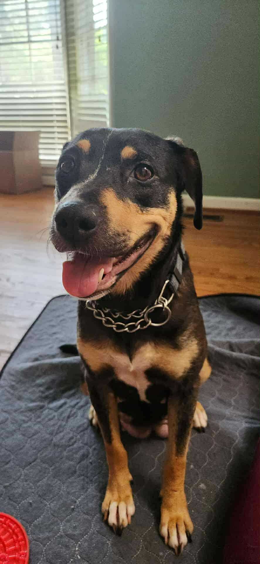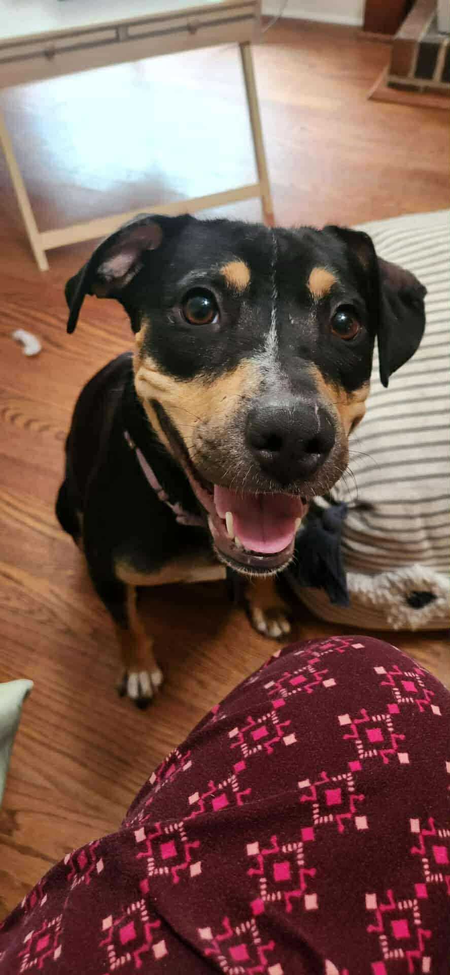 Wendy is a pint size pup at just 36 lbs. Her breed is a mystery but we do know she is a super happy girl with a happy wiggle butt! She loves everyone she meets and enjoys affectation. Wendy is great with other dogs (even ones that are more dominants) and can be cat tested. Wendy is young and still has that puppy energy, so she likes to be active, playing with toys or in the yard. She is crate and 90% potty trained. Wendy is also good in the car. So if your are looking for a happy friend to hit the parks, or trails, or even play fetch in the yard then meet Wendy!