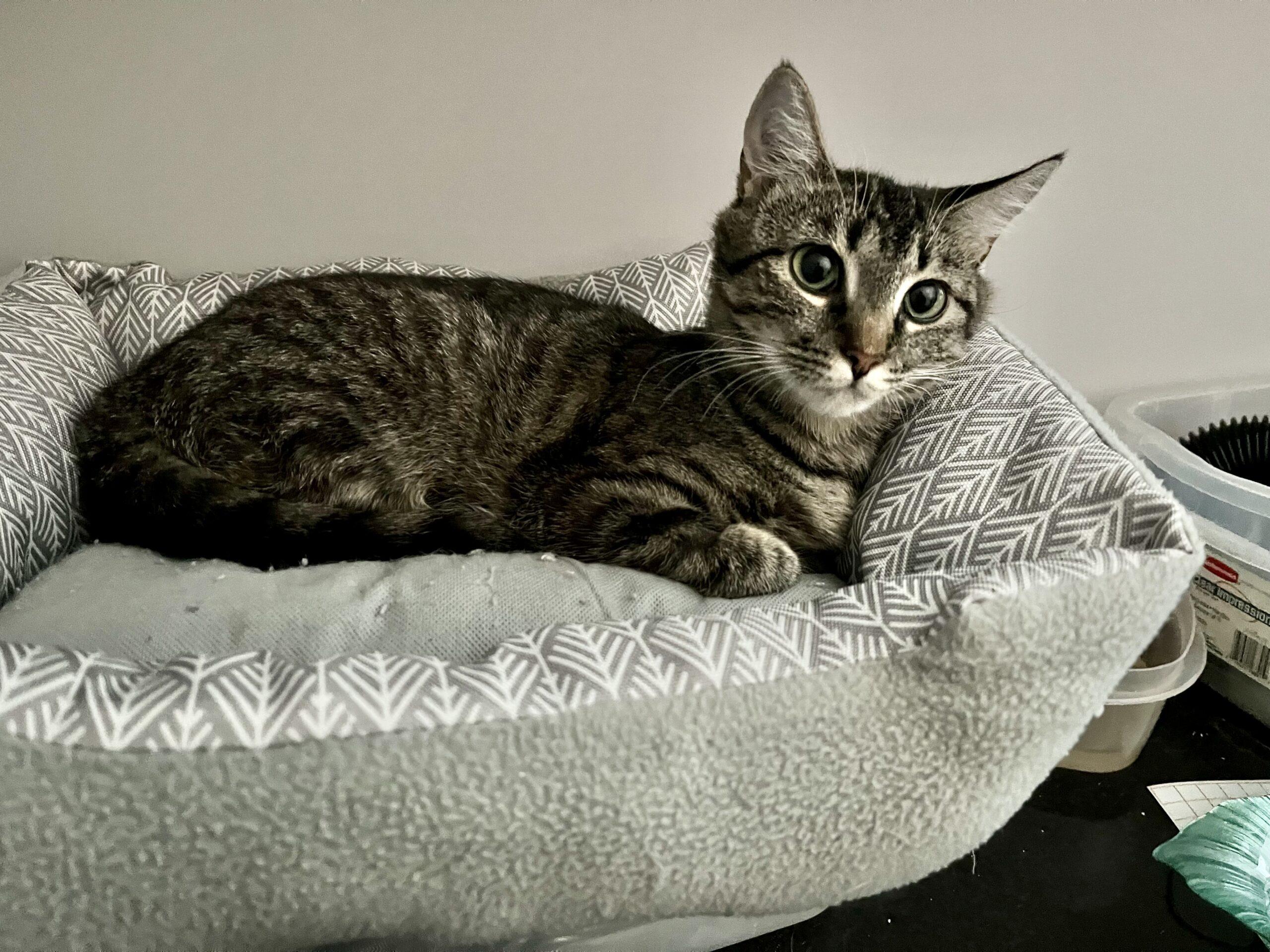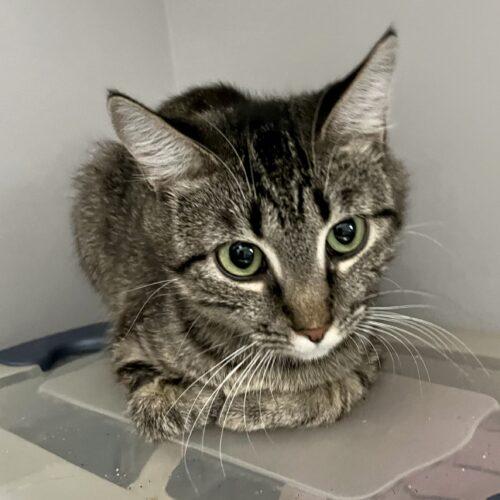 but otherwise, she just watches them in the foster home. She loves to snuggle in bed. She is litter box trained. Cleopatra came in as a stray with a litter of kittens. All of her kittens have been adopted and now she is waiting for her family.