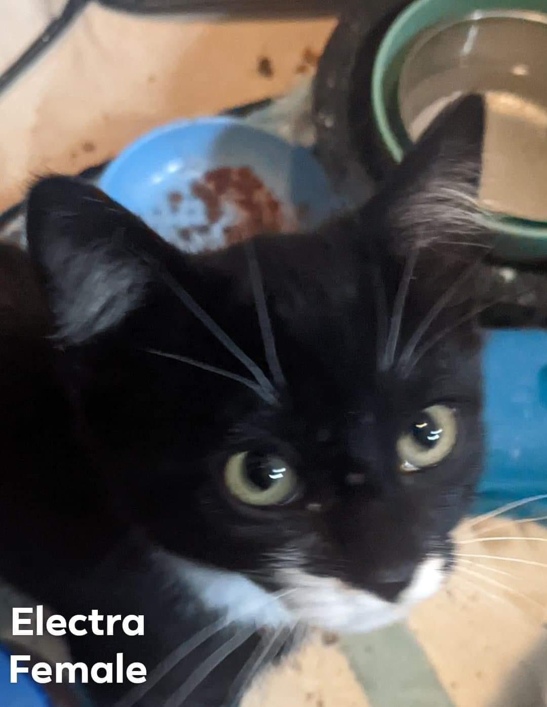 I am a total lovebug and adventurous. I love to play with toys and my siblings. I get along with everyone. I'm a little interested in dogs, but I'm young, I can learn. I'm good with other kitties and kids. I'm currently eating dry and wet food and I'm litter box trained.
