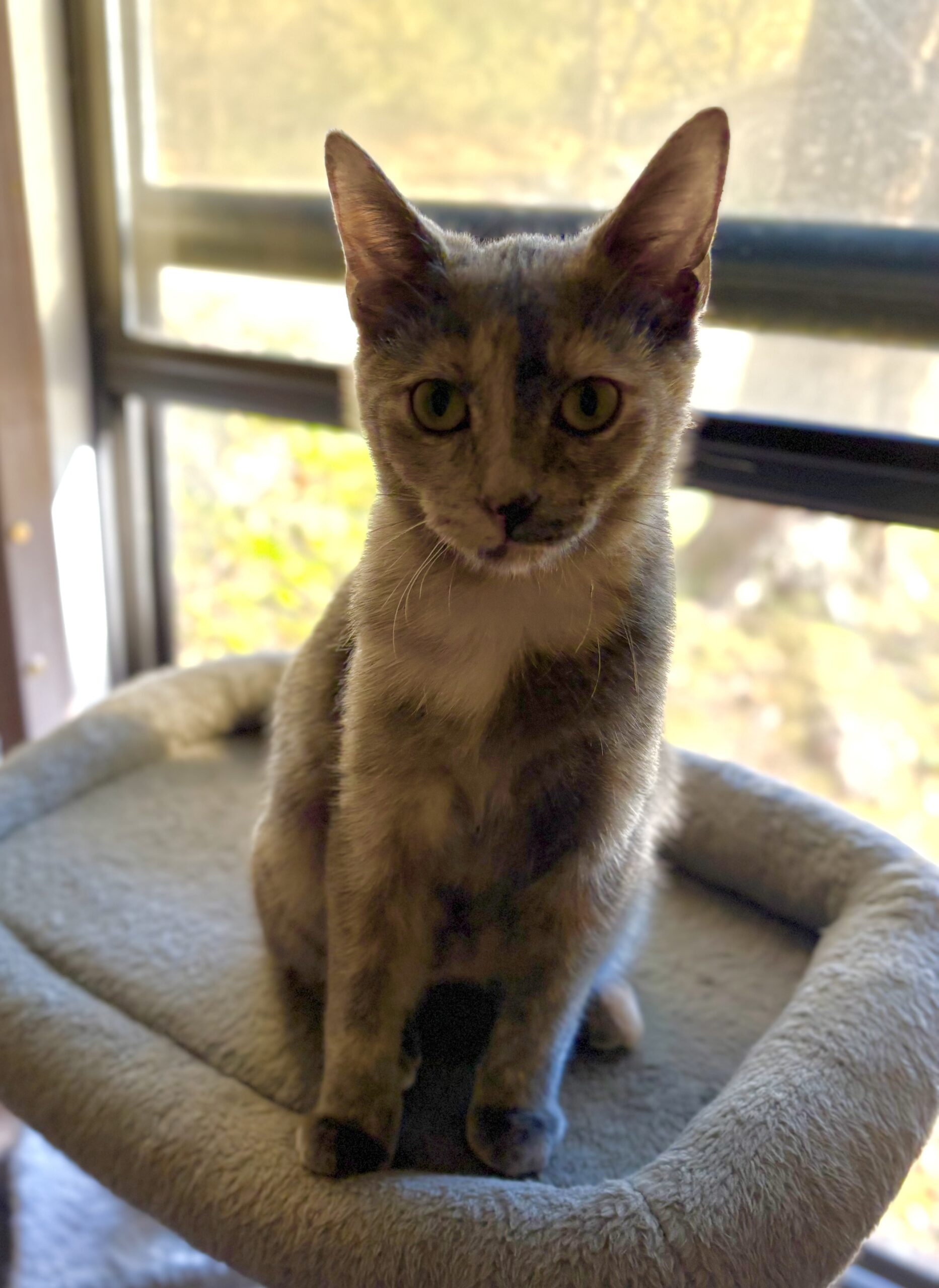 Conversation is her love language. She’ll chirp for attention, meep when she’s excited, and let out a full-body “mrrrp!” whenever she enters a room, as if to announce her presence like the queen she is.